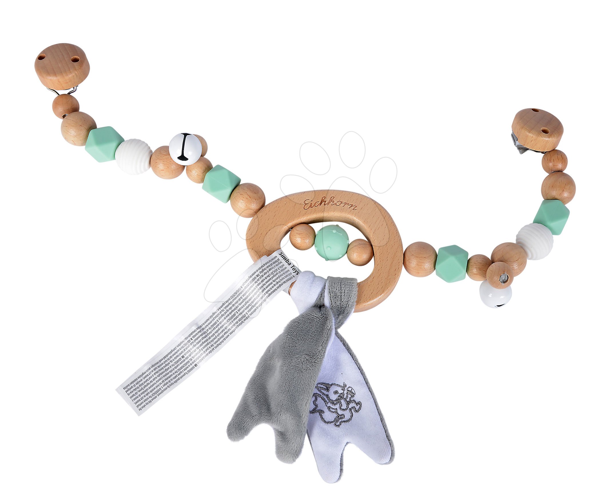 Dřevěný řetízek na kočárek Bio 100% Natur Baby Pure Pramchain Eichhorn se zvonky korálky a plyšovými oušky od 0 měs