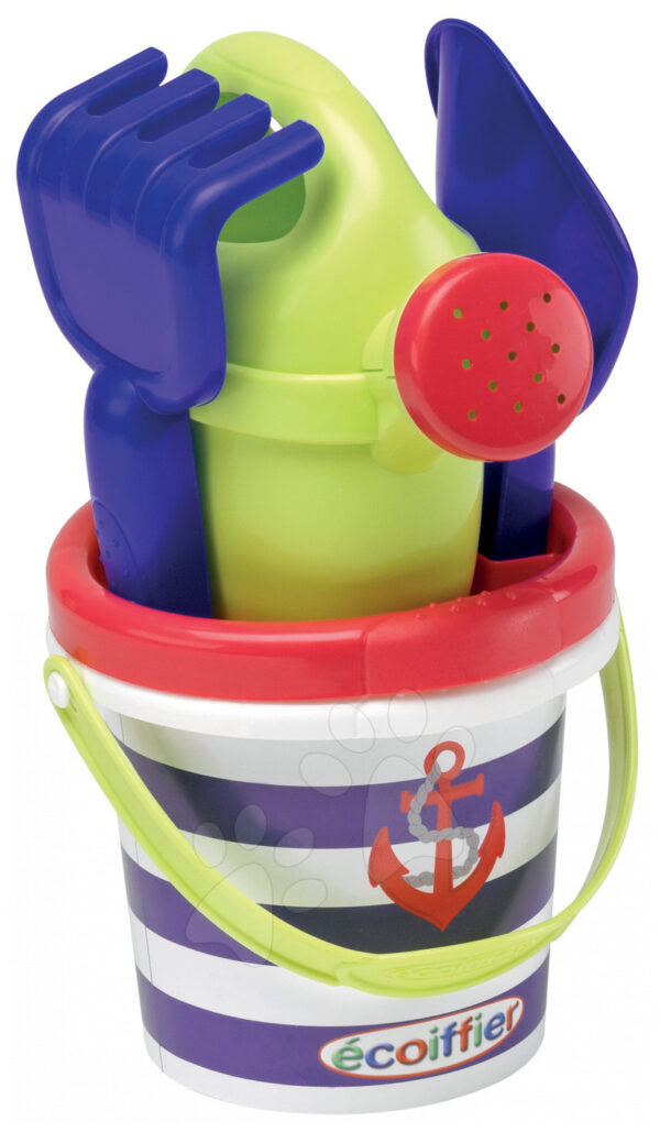 Hledáte kvalitní hračky do písku? Kbelík set Écoiffier tvoří 5 dílů z kvalitního plastu. Má námořnický motiv a děti při hrách v písku zabaví na dlouhou dobu.