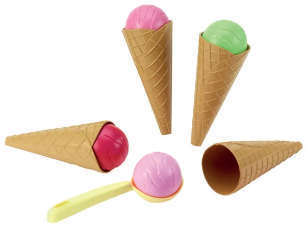 Kdo z nás dospělých nechtěl být v dětství zmrzlinářem? Nejmenší děti se mohou zahrát na prodavače zmrzliny se sadou Écoiffier, která obsahuje naběračku, hromádky zmrzliny a kornouty.