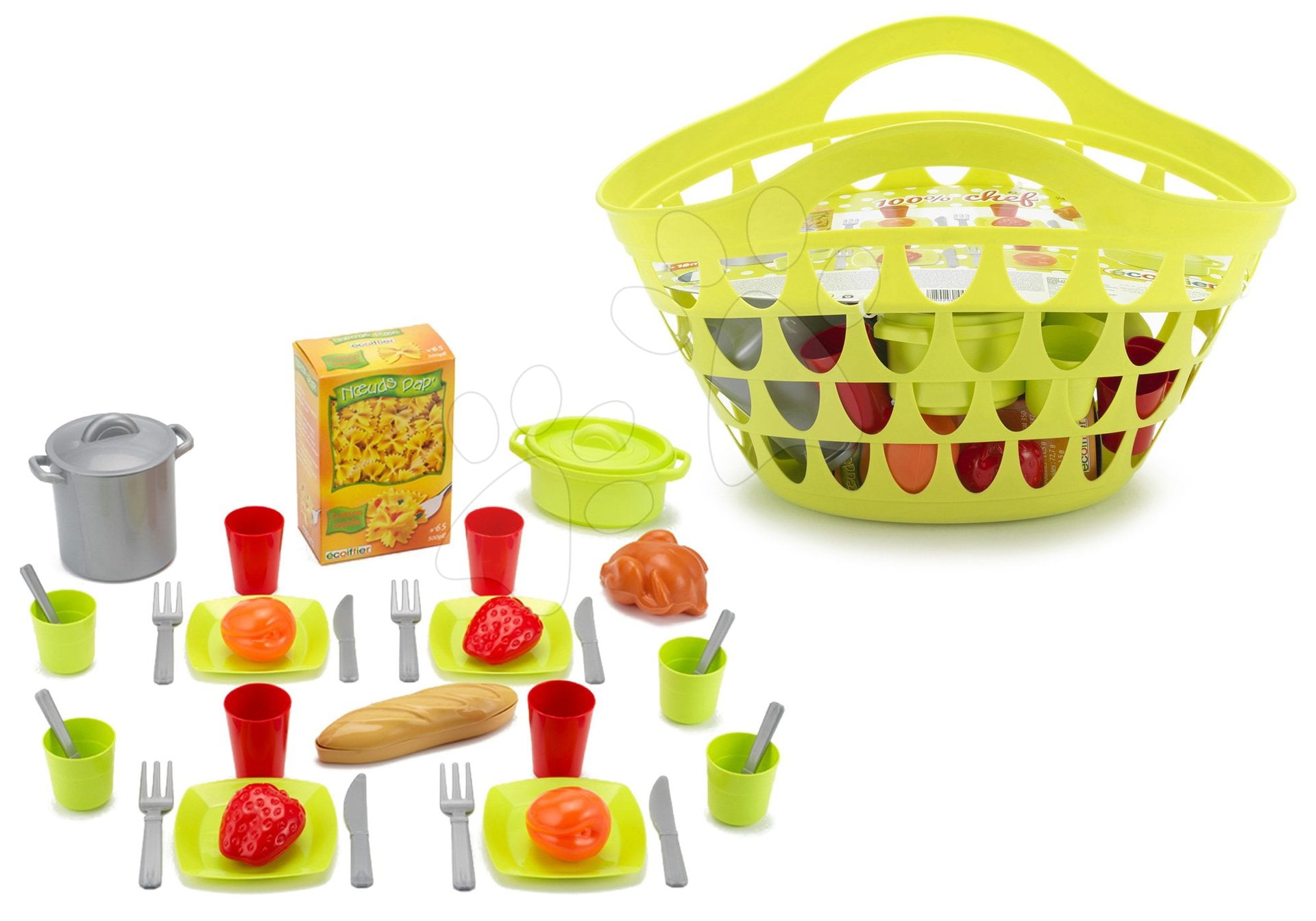 Écoiffier dětský košík s nádobím 100% Chef 940-C zelený