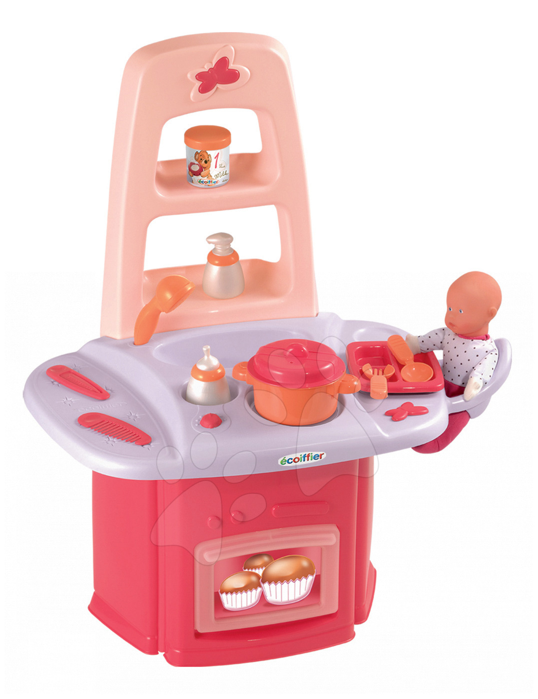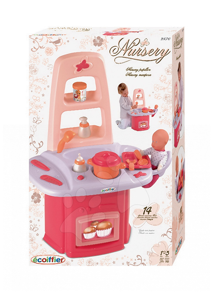 Hledáte doplňky na péči o panenku? Se stolkem Nursery získáte nejen přebalovací stolek, ale i kuchyňku, ve které může malá maminka uvařit oběd pro svou panenku.
