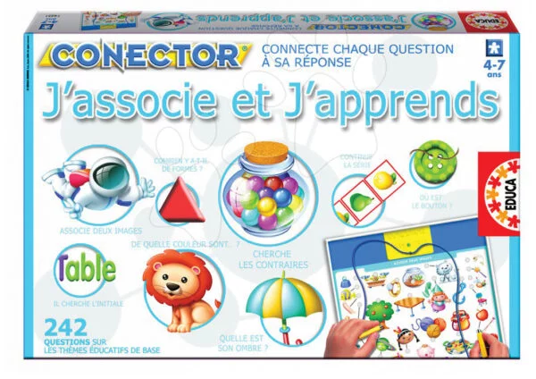 Hledáte pro své dítě hru, při které se zabaví a zároveň i něco naučí? Naučná hra Conector je pro děti ve věku 4–7 let ve francouzštině. Pomocí otázek a odpovědí se děti naučí spojovat předměty.
