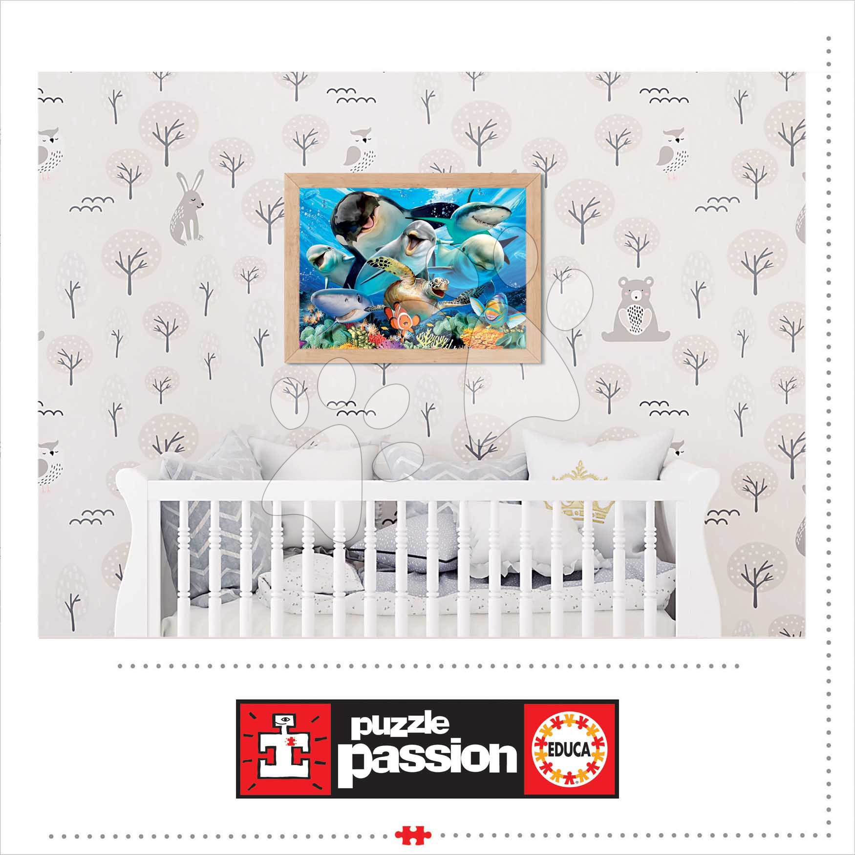 Nádherné puzzle pro děti i dospělé. Puzzle Underater selfies Educa s 500 dílky zachycuje jedinečný podmořský svět s fotkou mořských živočichů.