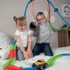 Flexibilní autodráha s obloukem Flextrem Superloop Circuit Smoby vertikálně-horizontální s autem 145 dílů od 4 let