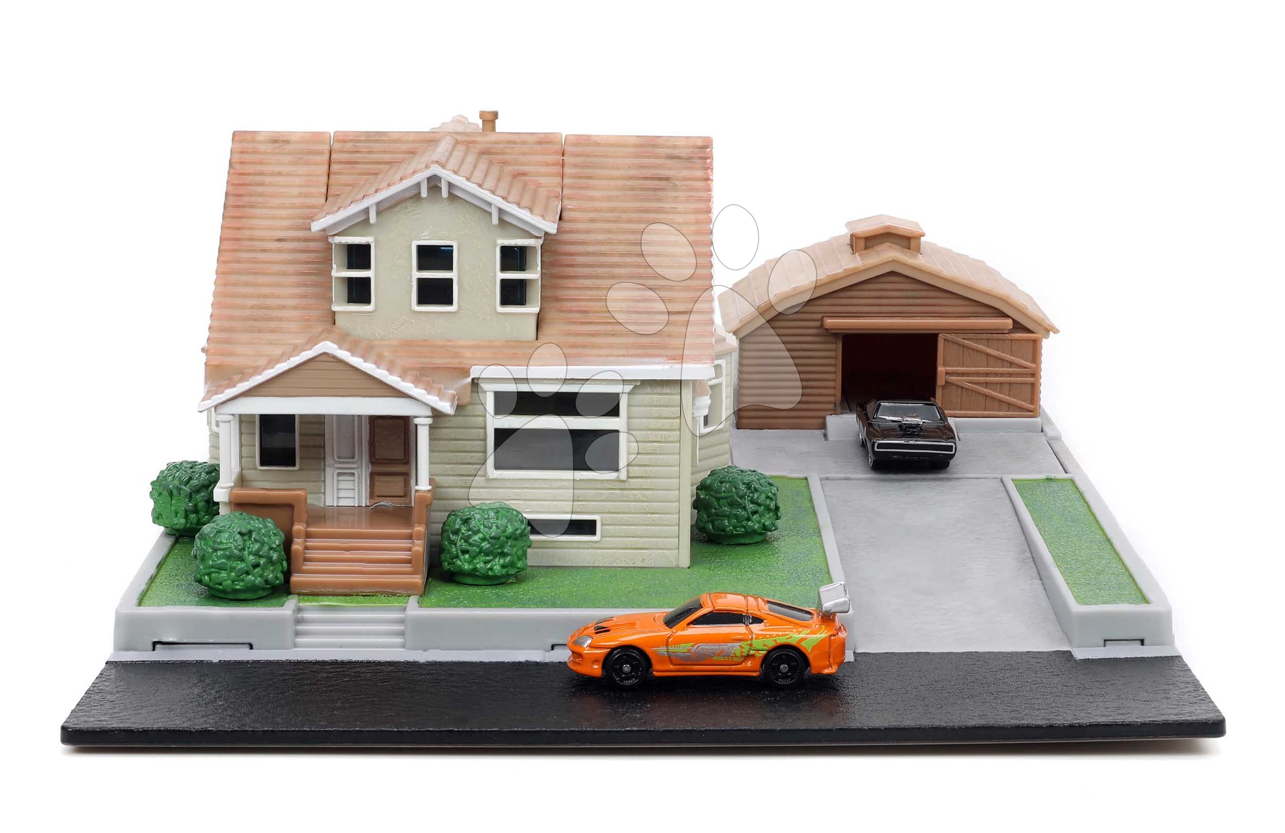 Garáž s domem Dominic Toretto Fast & Furious Nano scene Jada 13 dílů s piknikovým posezením a 2 kovová autíčka od 8 let