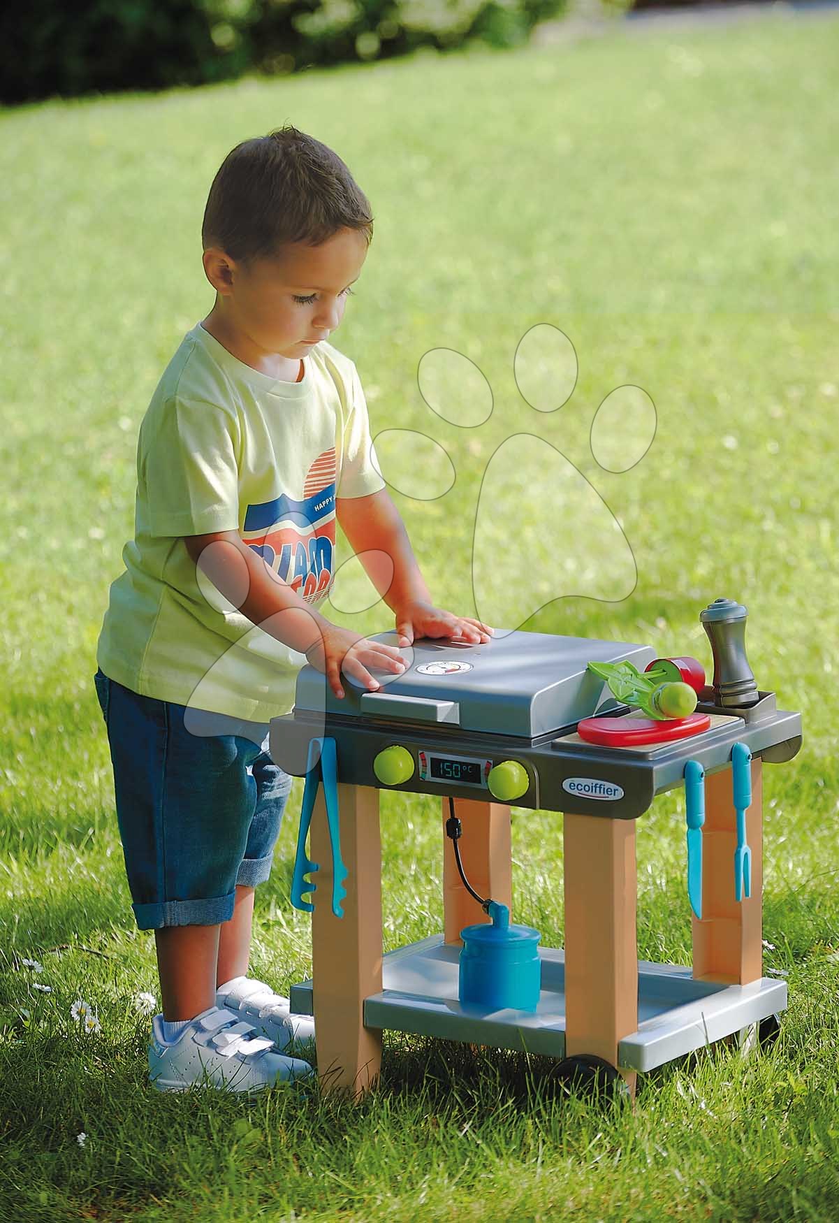 Gril na zahradu The plancha Écoiffier s kuchyňským nářadím a potravinami 23 doplňků od 18 měsíců