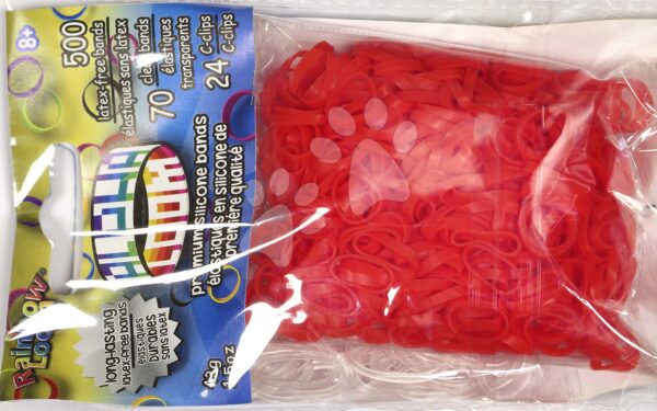 Prvotřídní gumičky Rainbow Loom potěší kreativní děti již od 6 let. sada 500 kusů gumiček v červeném provedení je vybavena také plastovými svorkami pro snazší vytváření náramků.
