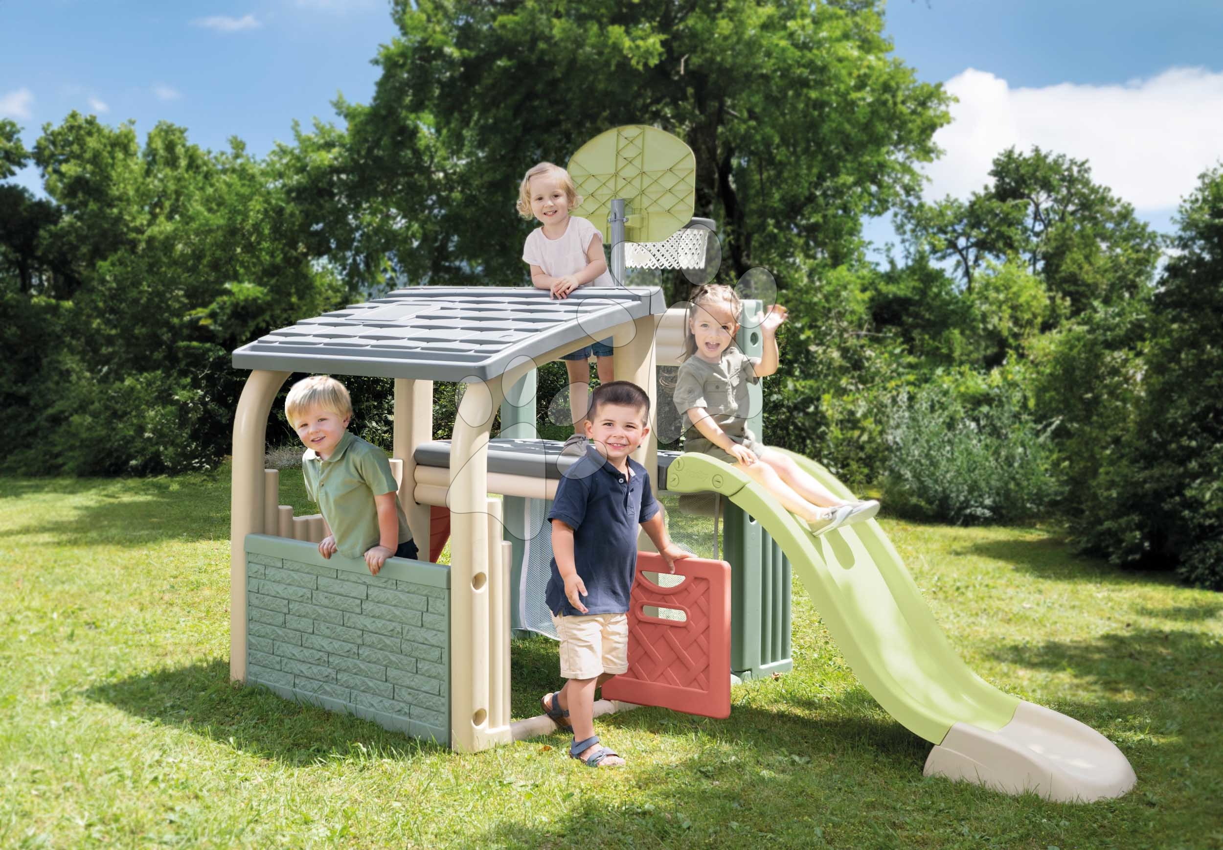 originální hrací centrum na zahradu od francouzského výrobce Smoby. Hrací centrum s basketbalovým košem, skluzavkou, brankou a domečkem potěší každé dítě již od 2 let.
