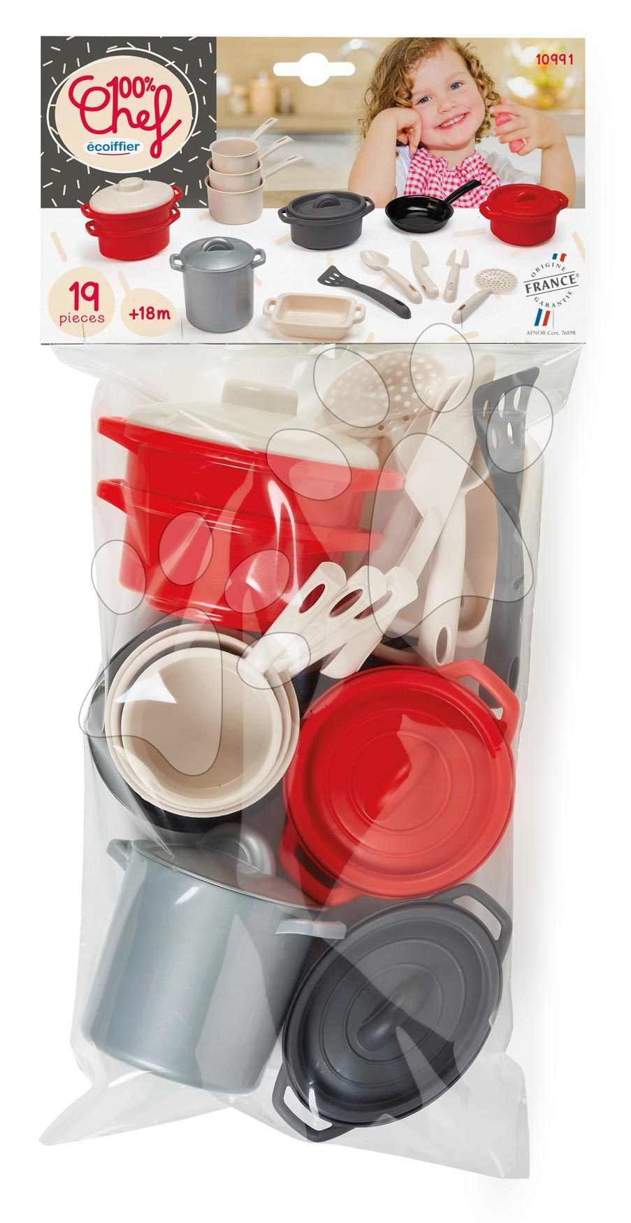 Hrnce s nádobím 100% Chef Écoiffier 19 dílů s kuchyňským nářadím od 18 měsíců