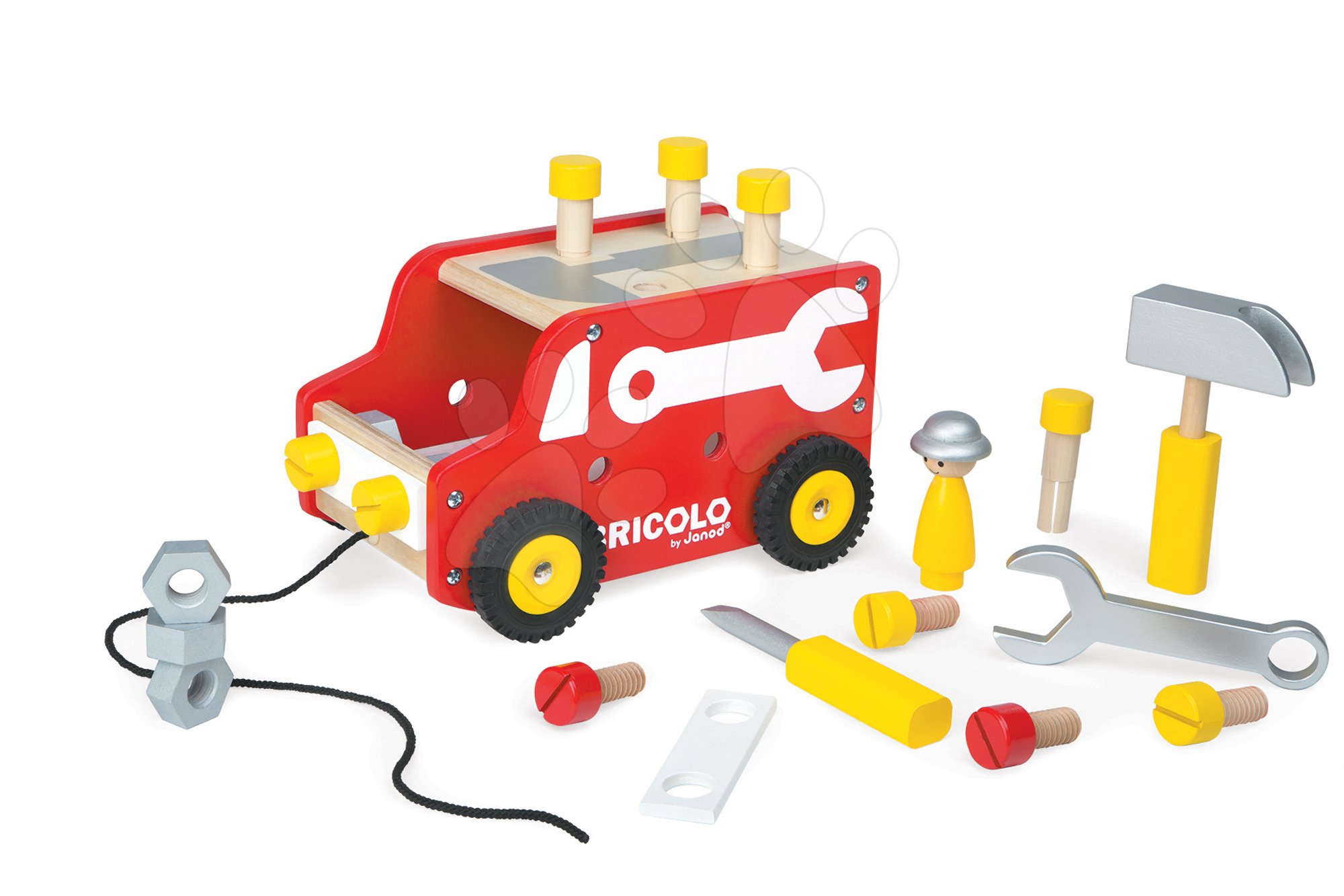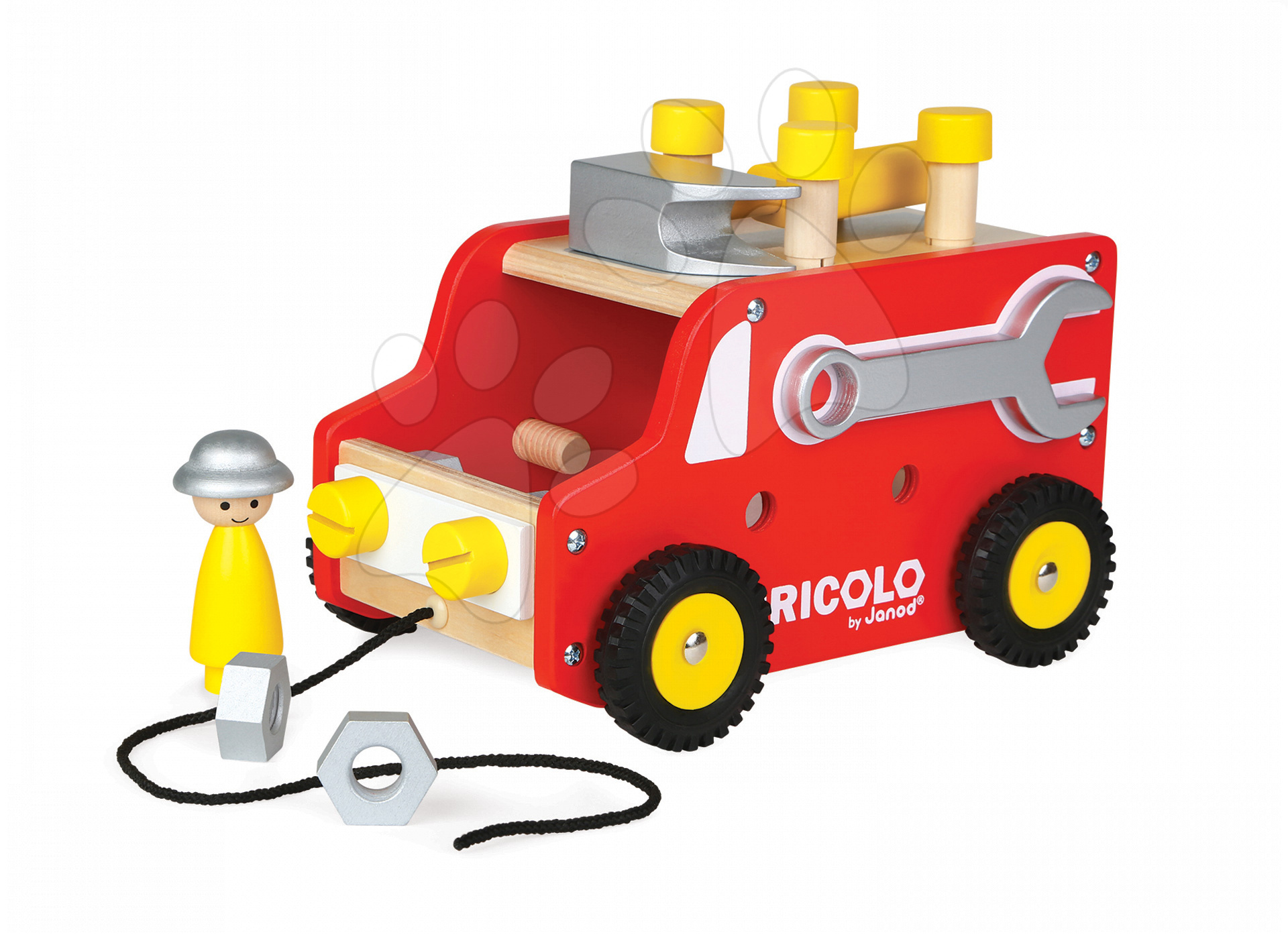 Janod dřevěná magnetická stavebnice Redmaster Bricolo Truck 06490 červeno-žlutá