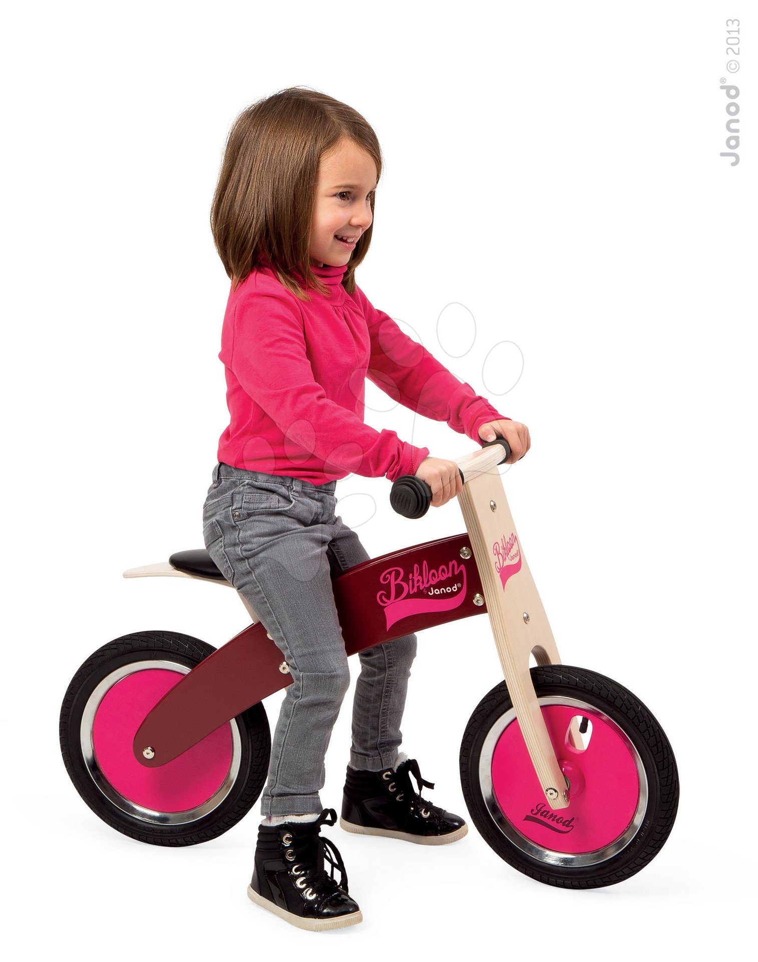Touží vaše holčička po odrážedle? Janod dřevěné balanční kolo Bikloon pink & Burgundy potěší děti od 3 let. Jízdou na odrážedle se dítě naučí udržet rovnováhu a posiluje svaly.