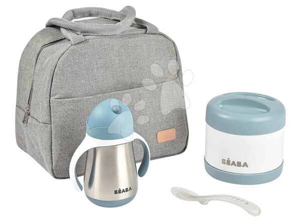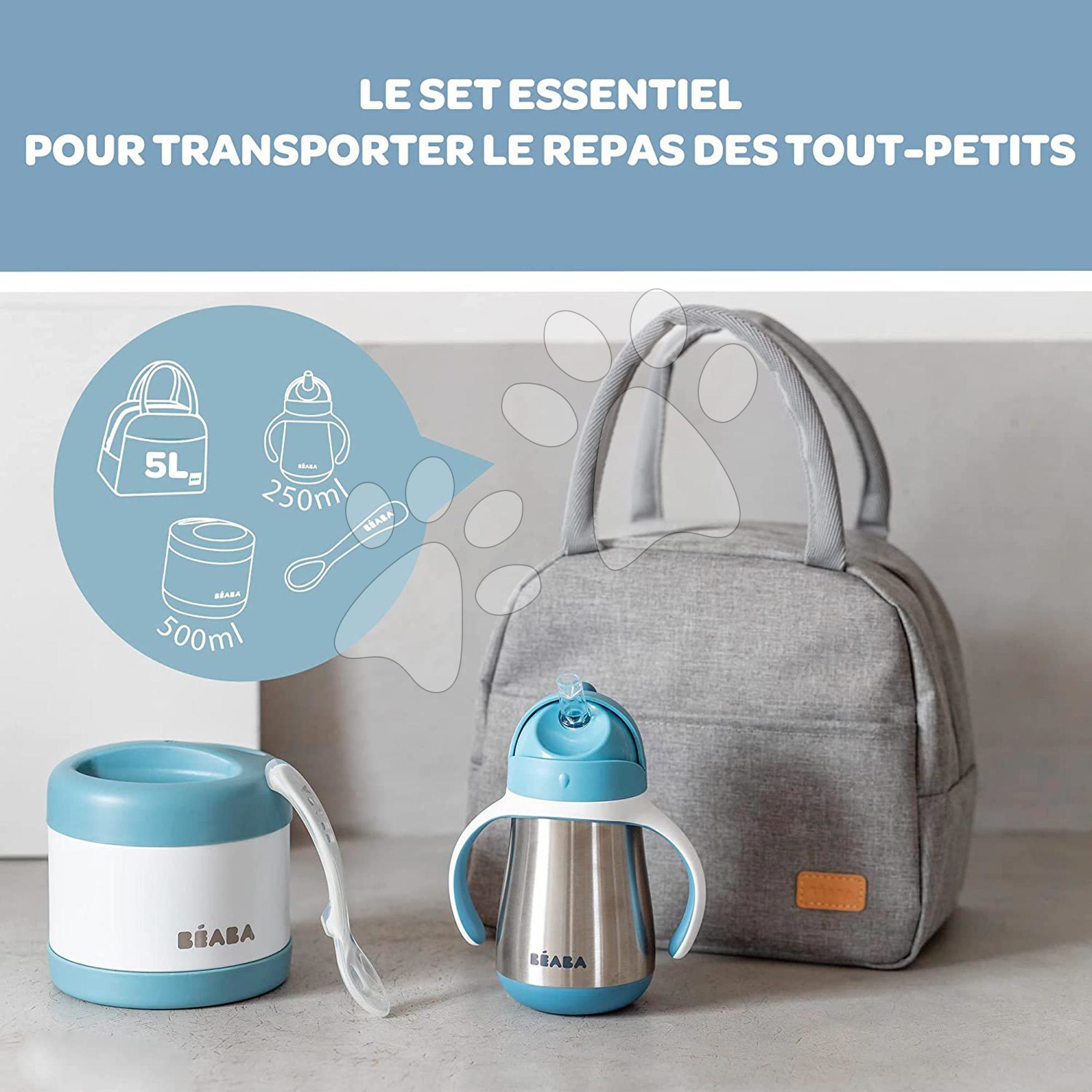 Jídelní souprava On-the-go Mealtime Beaba Windy Blue s izotermickou taškou a sklenicí s termoskou na jídlo a lžičkou na krmení šedo-modrá od 8 měsíců