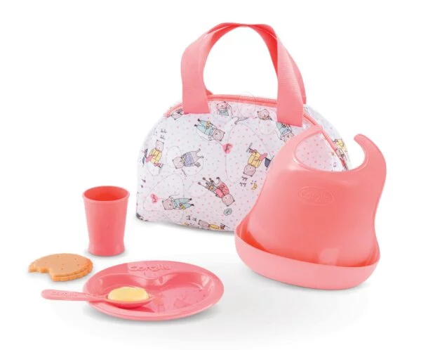 Je panenka vašeho děťátka hladová? jídelní souprava s taškou Mealtime set pro panenku Corolle obsahuje vše na okamžité krmení.