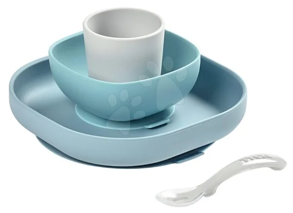 Jídelní souprava Silicone Meal Set Beaba ze silikonu 4dílná modrá pro miminka od 4 měsíců