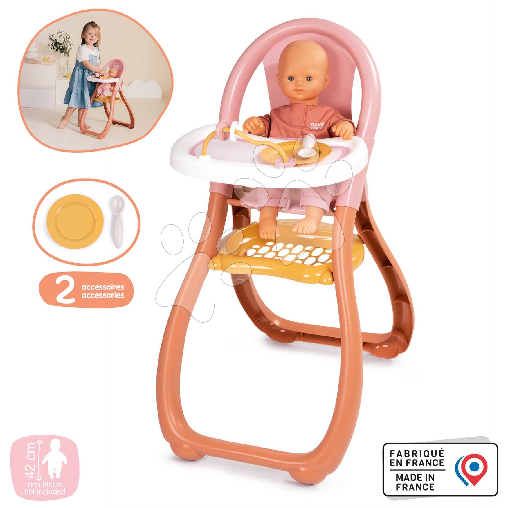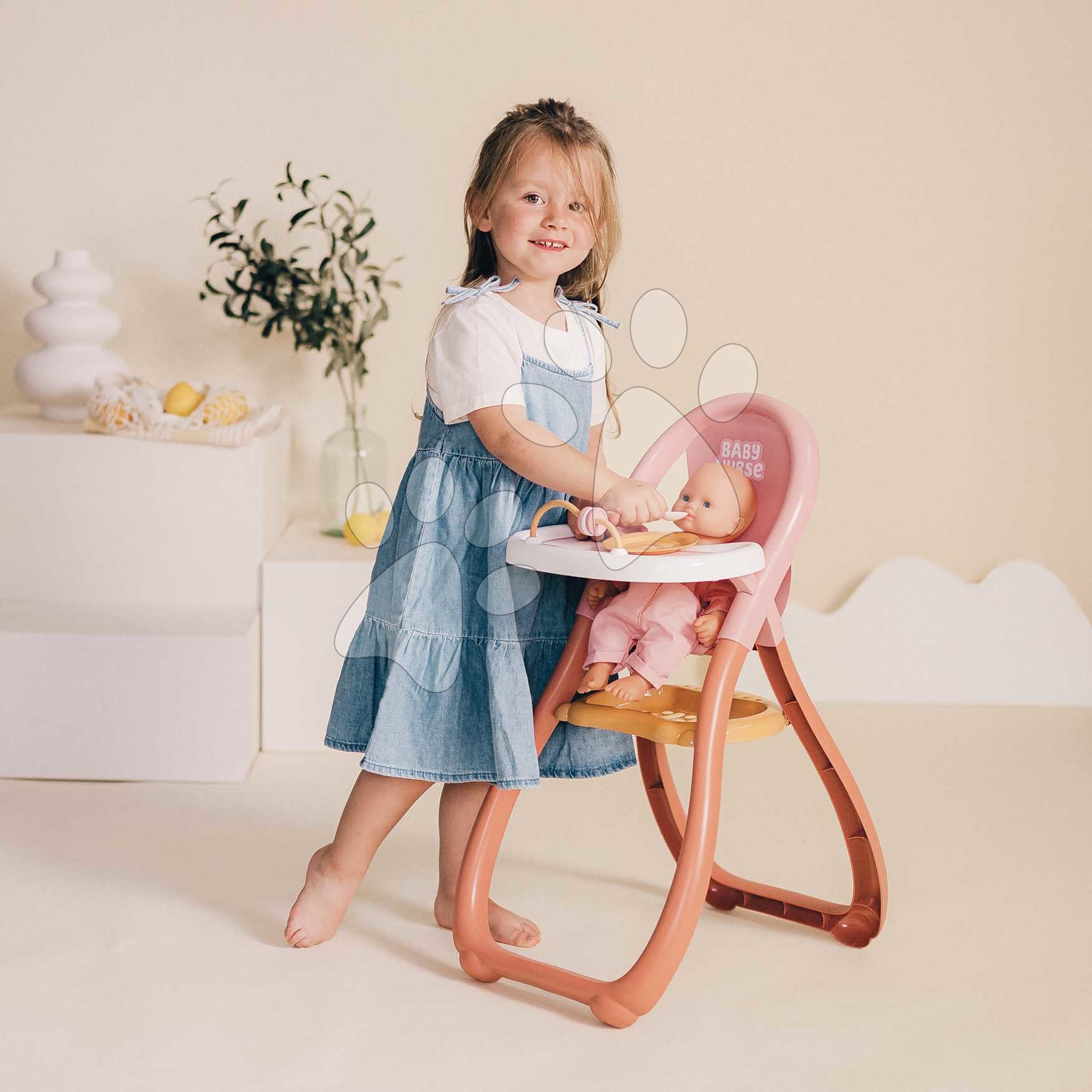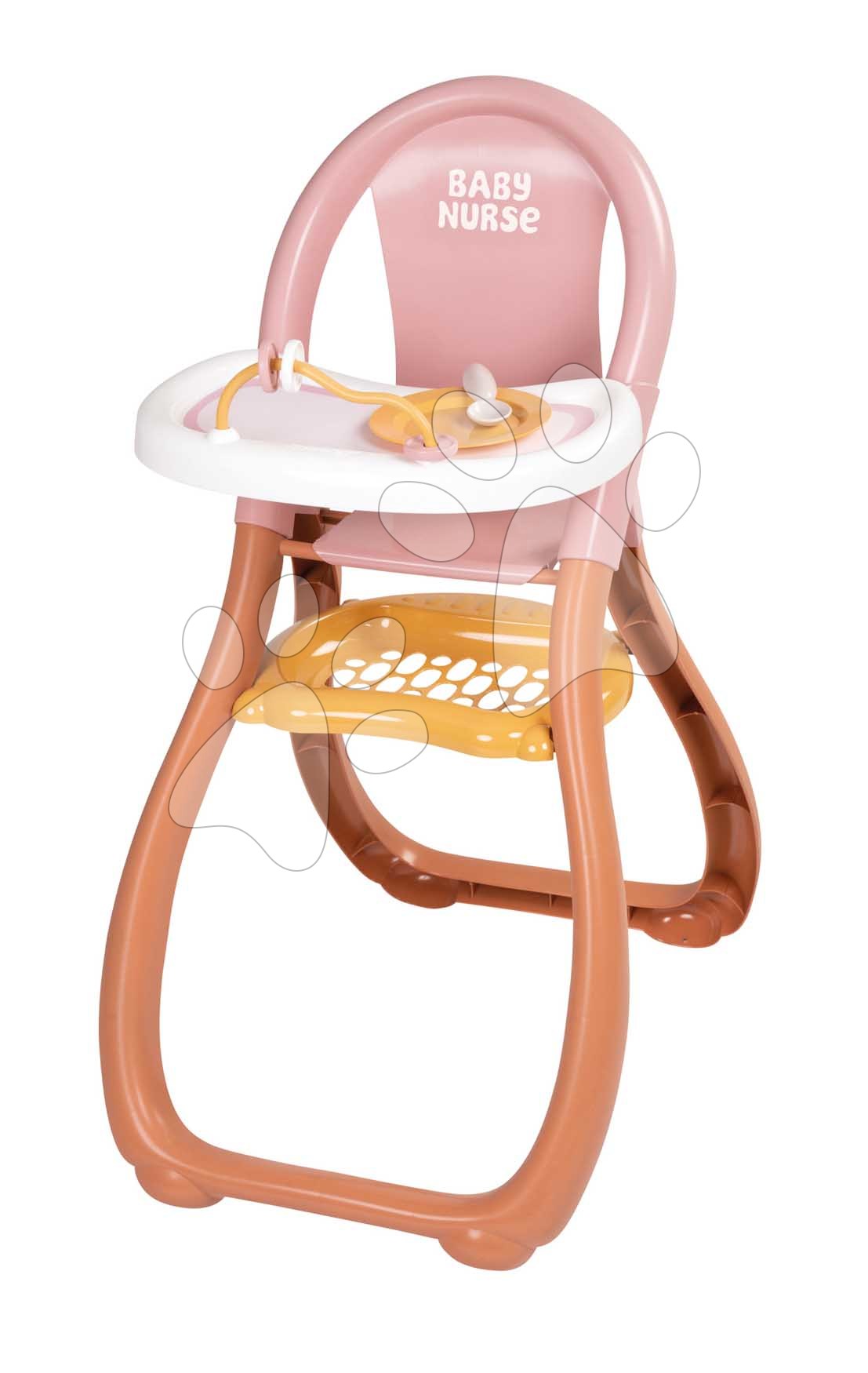 Jídelní židle s barevnými kroužky Highchair Soft Baby Nurse Smoby se lžičkou a talířkem pro panenku 42 cm od 18 měsíců