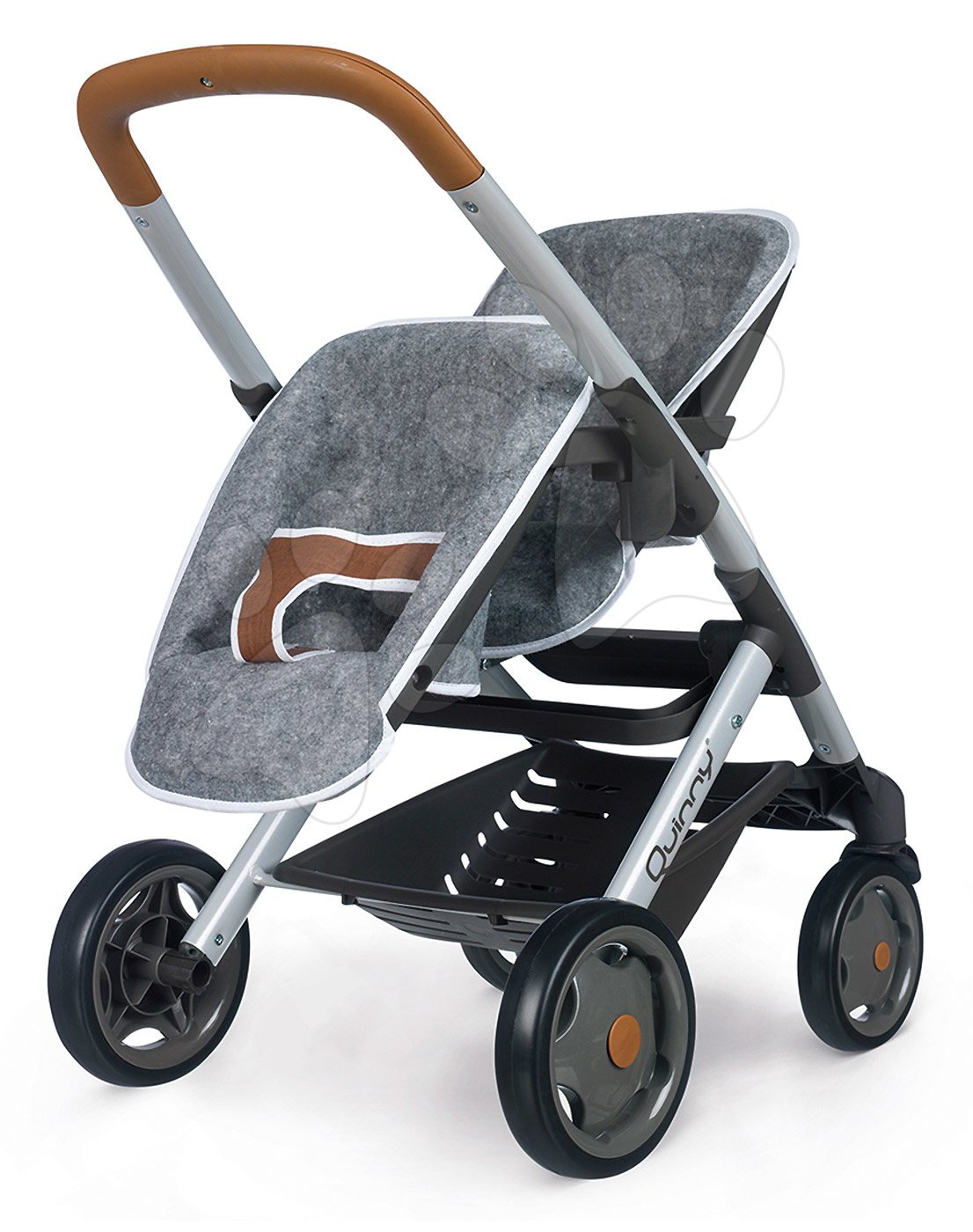 Kočárek pro dvě panenky DeLuxe Pastel Maxi Cosi&Quinny Grey Smoby s polohovatelnou opěrkou a 65 cm výška rukojeti