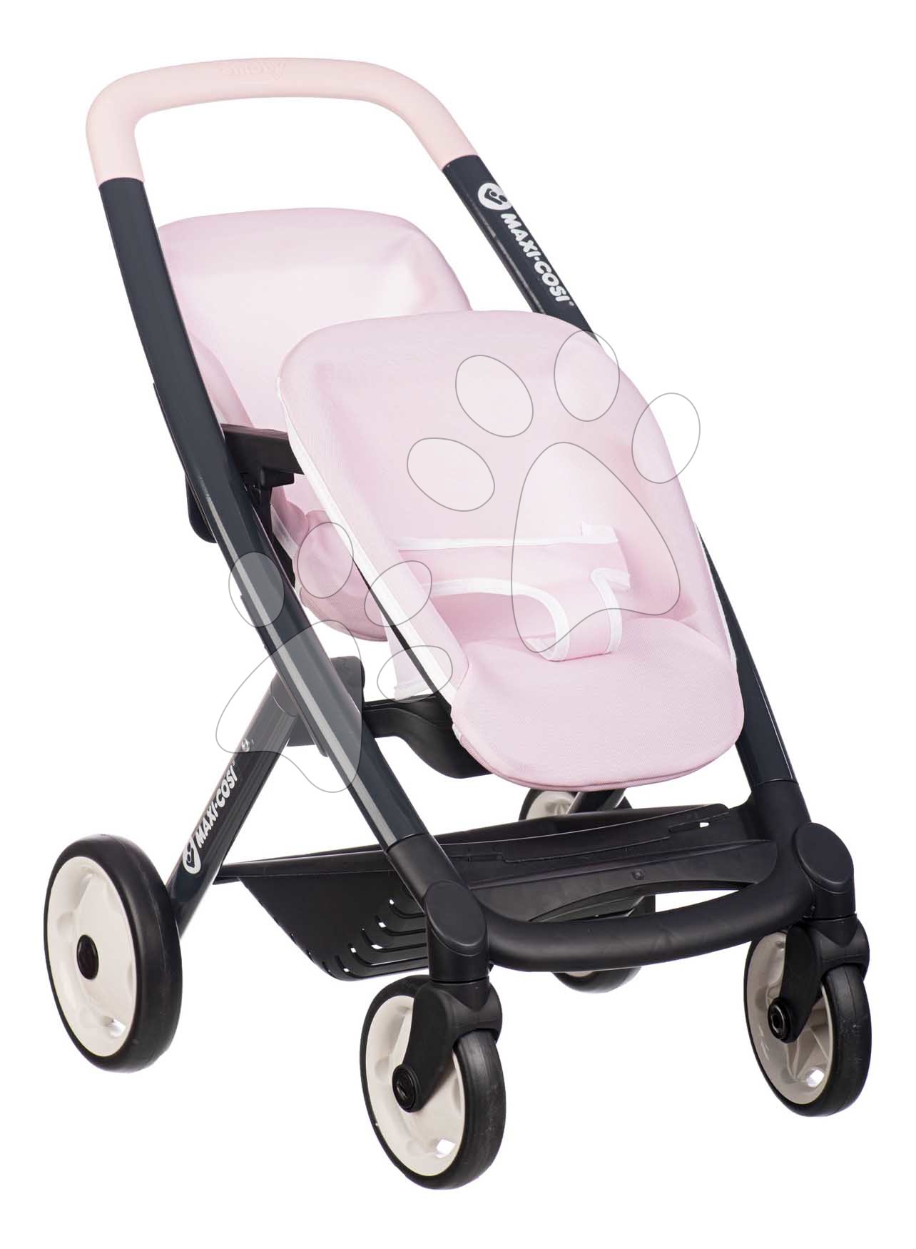 Kočárek pro dvojčata s bezpečnostním pásem Twin Pushchair Pink Maxi Cosi&Quinny Smoby pro 42 cm panenku s 64 cm ergonomickou rukojetí