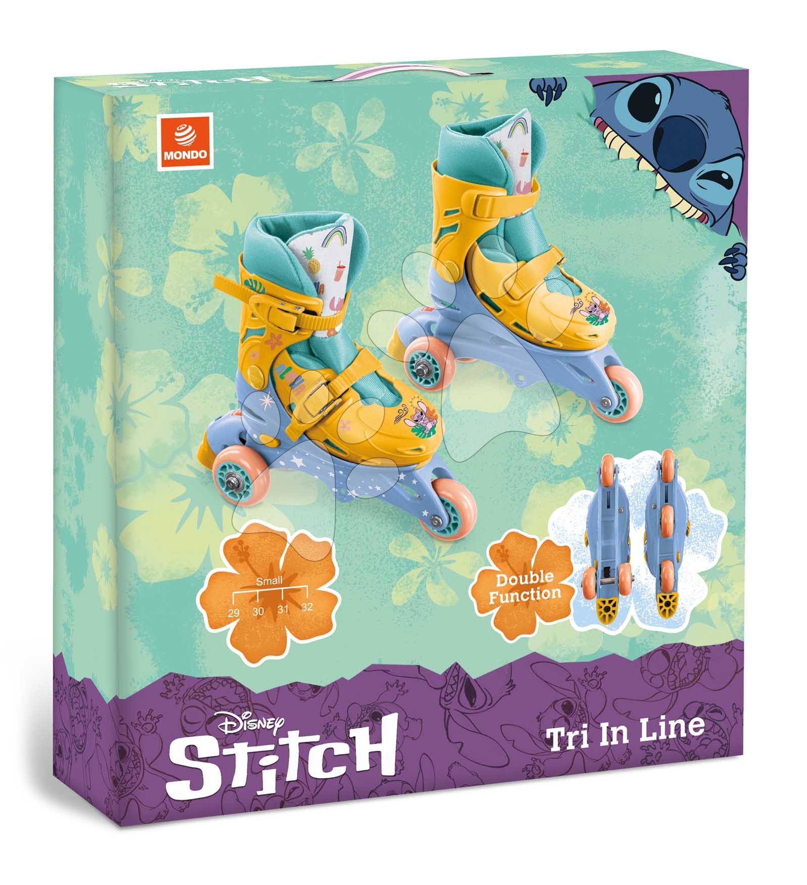 Kolečkové brusle Inline 3kolečkové Stitch Mondo s dvojitou funkcí PVC kolečka 29–32 velikost od 6 let