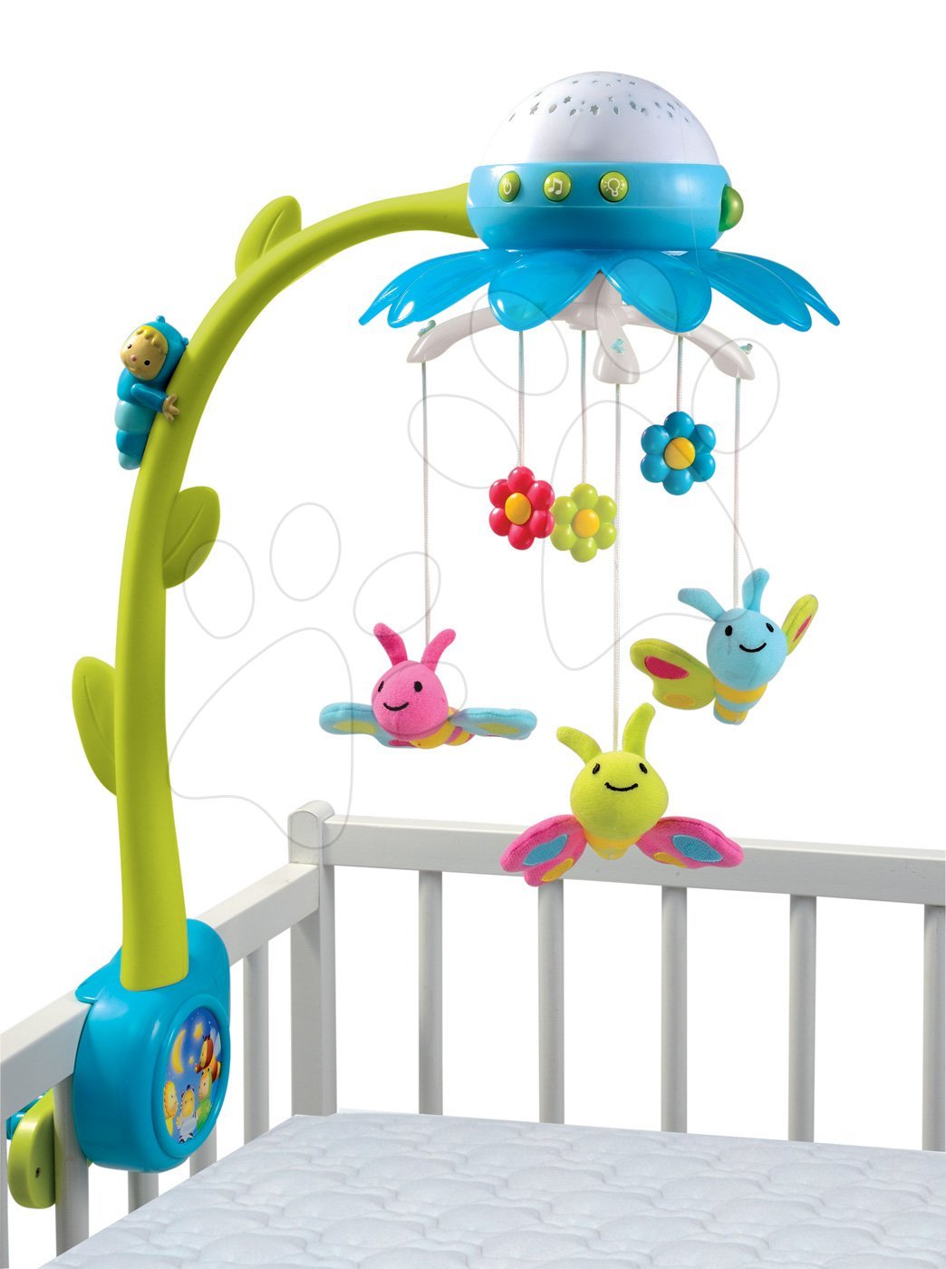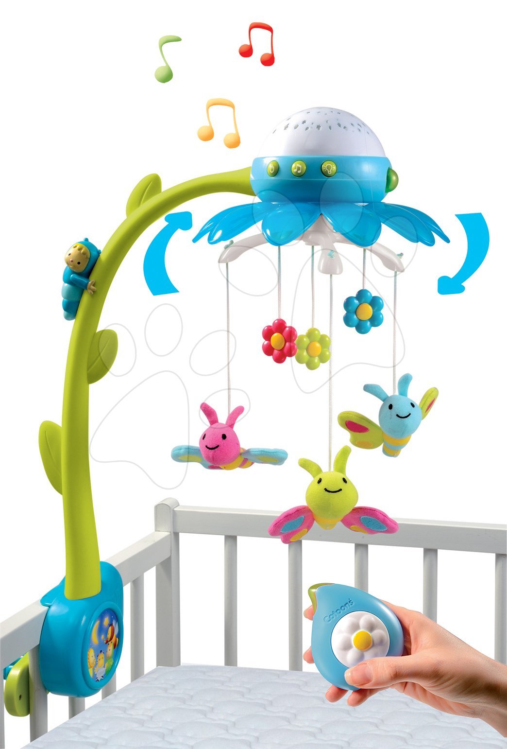 Hledáte kolotoče nad postýlku pro miminka s ukolébavkou? Modrý kolotoč nad postýlku Flower Cotoons Smoby má projektor, zvuky a světlo.