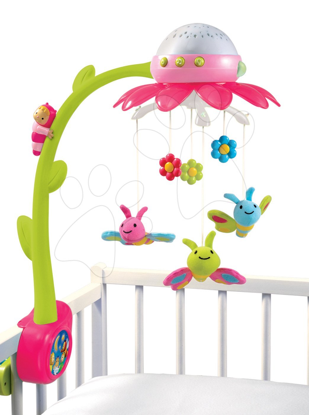Hledáte kolotoče nad postýlku pro miminko se světlem a hudbou? Růžový kolotoč nad postýlku Flower Cotoons Smoby s projektorem je skvělou volbou.