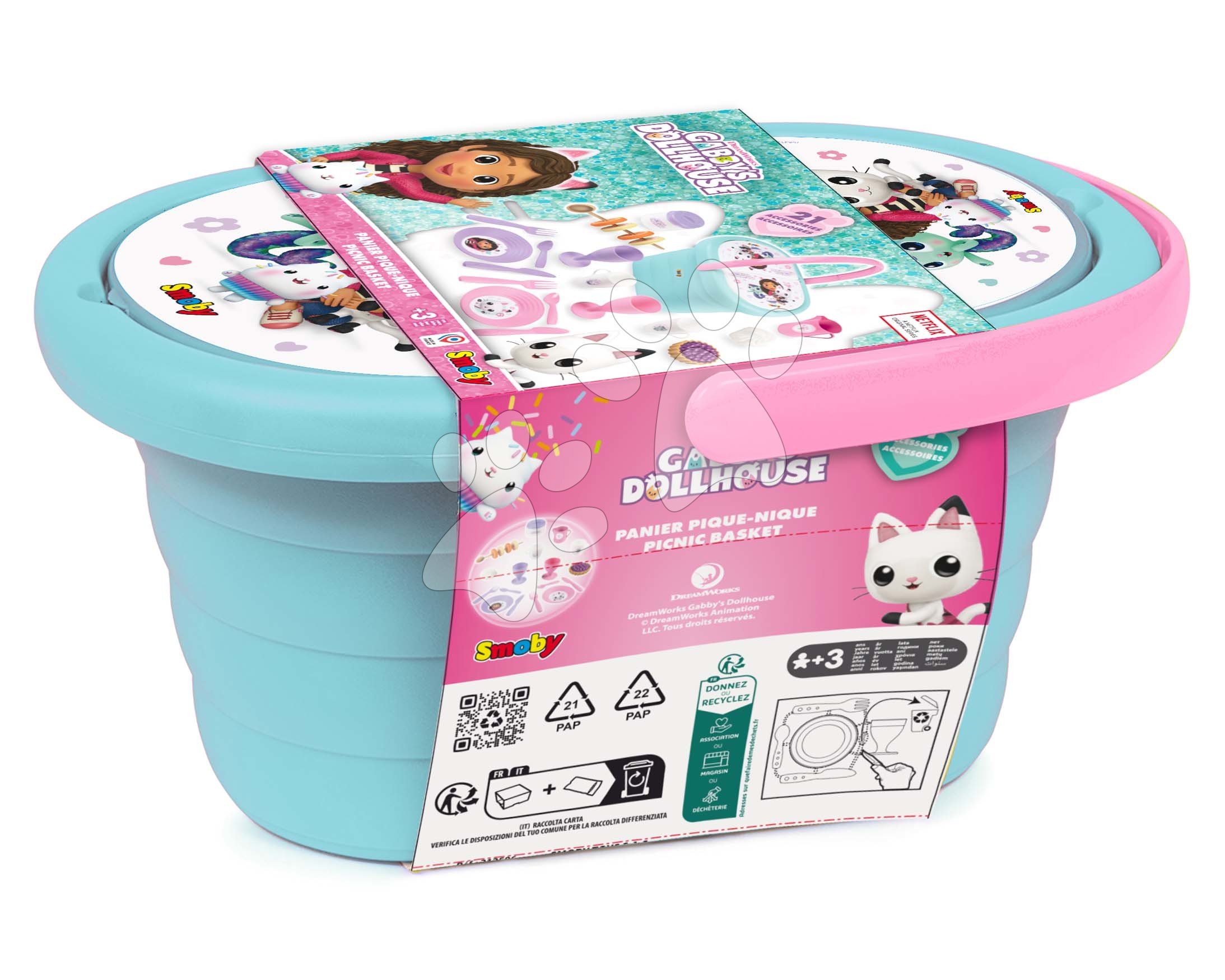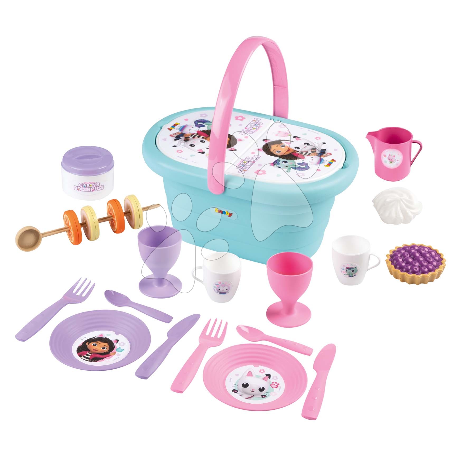 originální hračky na pikniky a posezení od francouzského výrobce Smoby. Košík s jídelní soupravou a skleničkami s potravinami s motivem Gabby´s Dollhouse okouzlí holčičky již od 3 let.