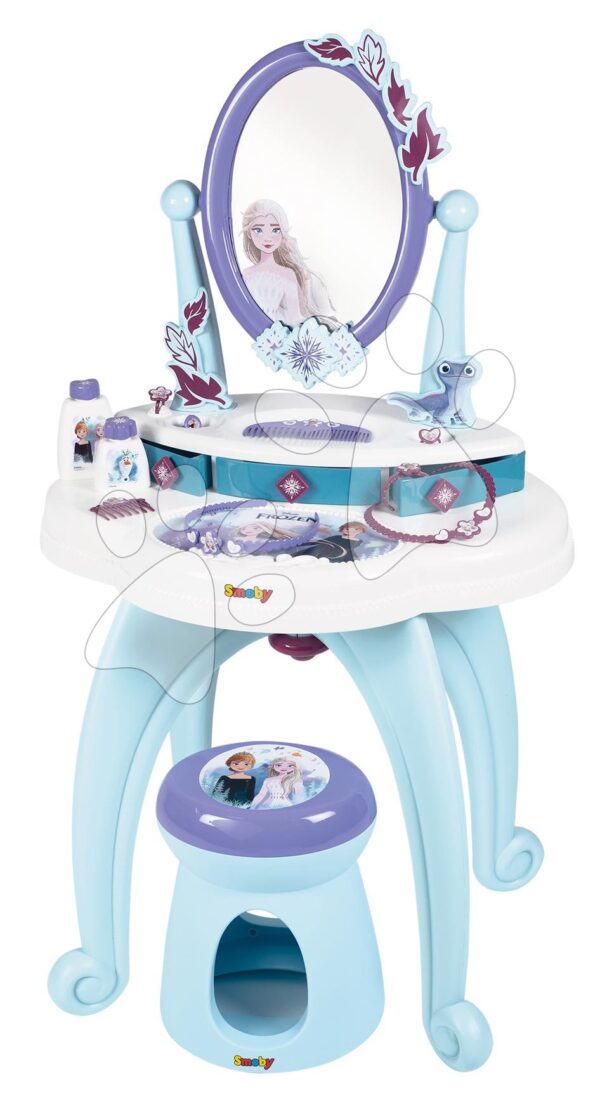 Krásné kosmetické stolky s motivem Frozen od francouzského Smoby. Kosmetický stolek Frozen s taburetkou a 10 doplňky potěší děti od 3 let.