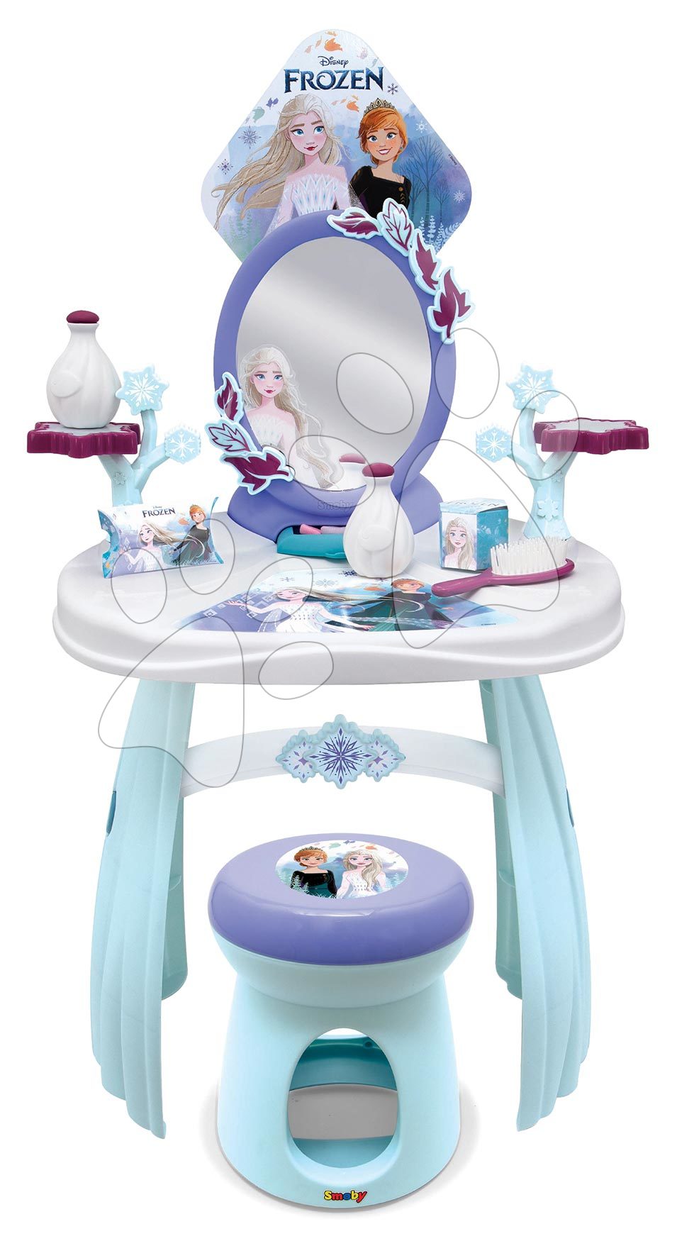Pohádkové hračky Smoby pro malé kadeřnice a kosmetičky od 3 let. Kosmetický stolek s židlí s motivem Frozen obsahuje 10 kvalitních doplňků.