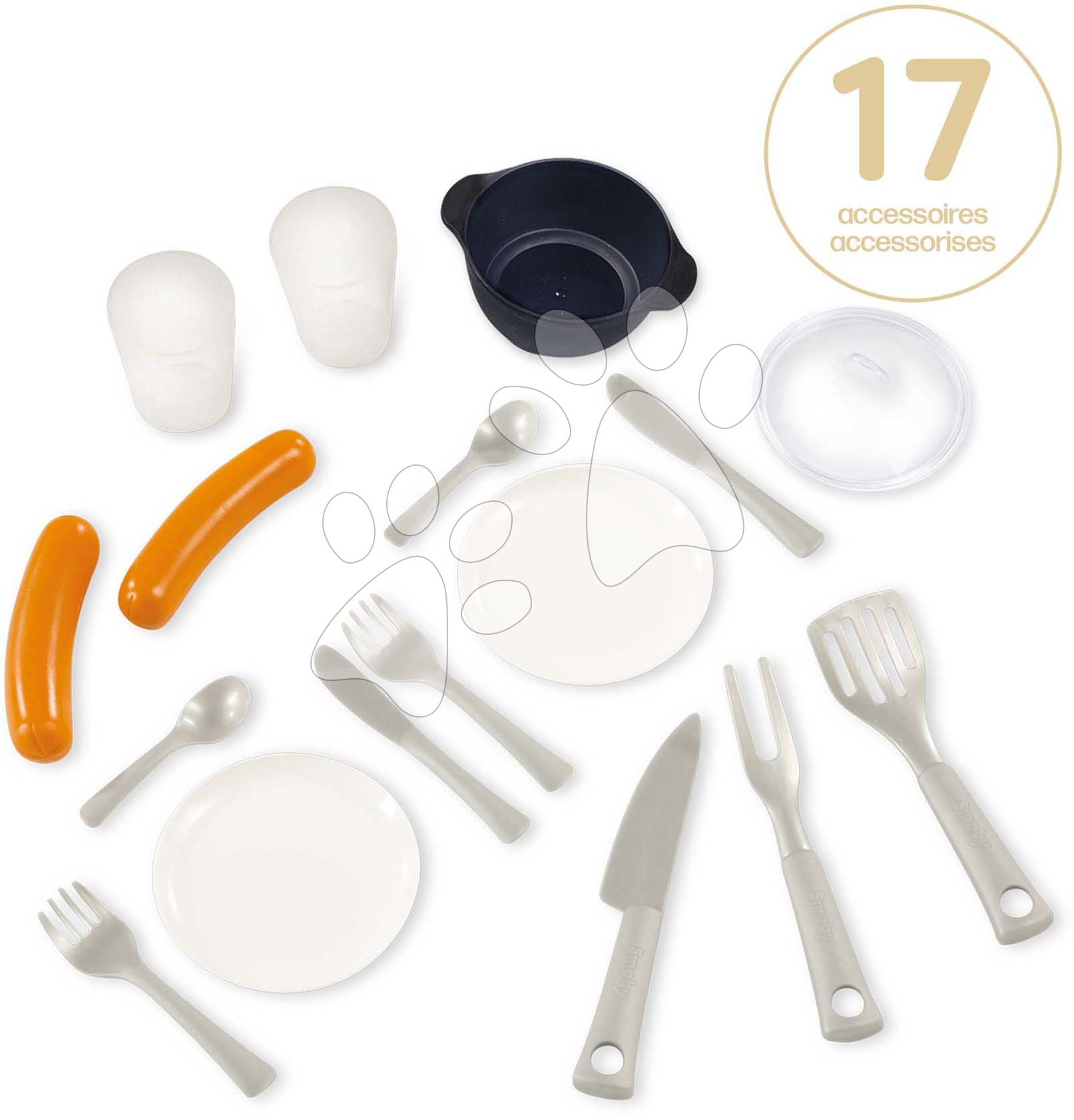 Kuchyňka letní se 17 doplňky Summer Kitchen k domečkům Smoby s varnou deskou a dřez na mytí nádobí s UV filtrem od 24 měsíců