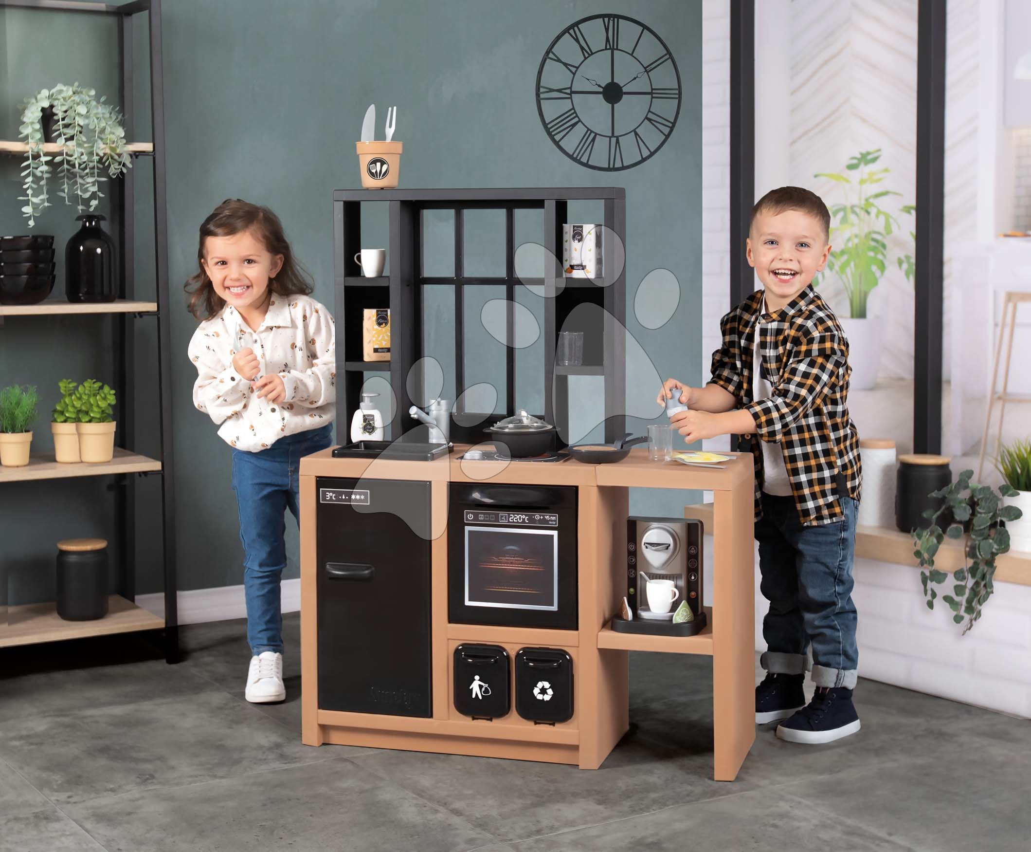 Kuchyňka moderní Loft Industrial Kitchen Smoby s kávovarem a funkčními spotřebiči a 32 doplňky 50 cm pracovní deska