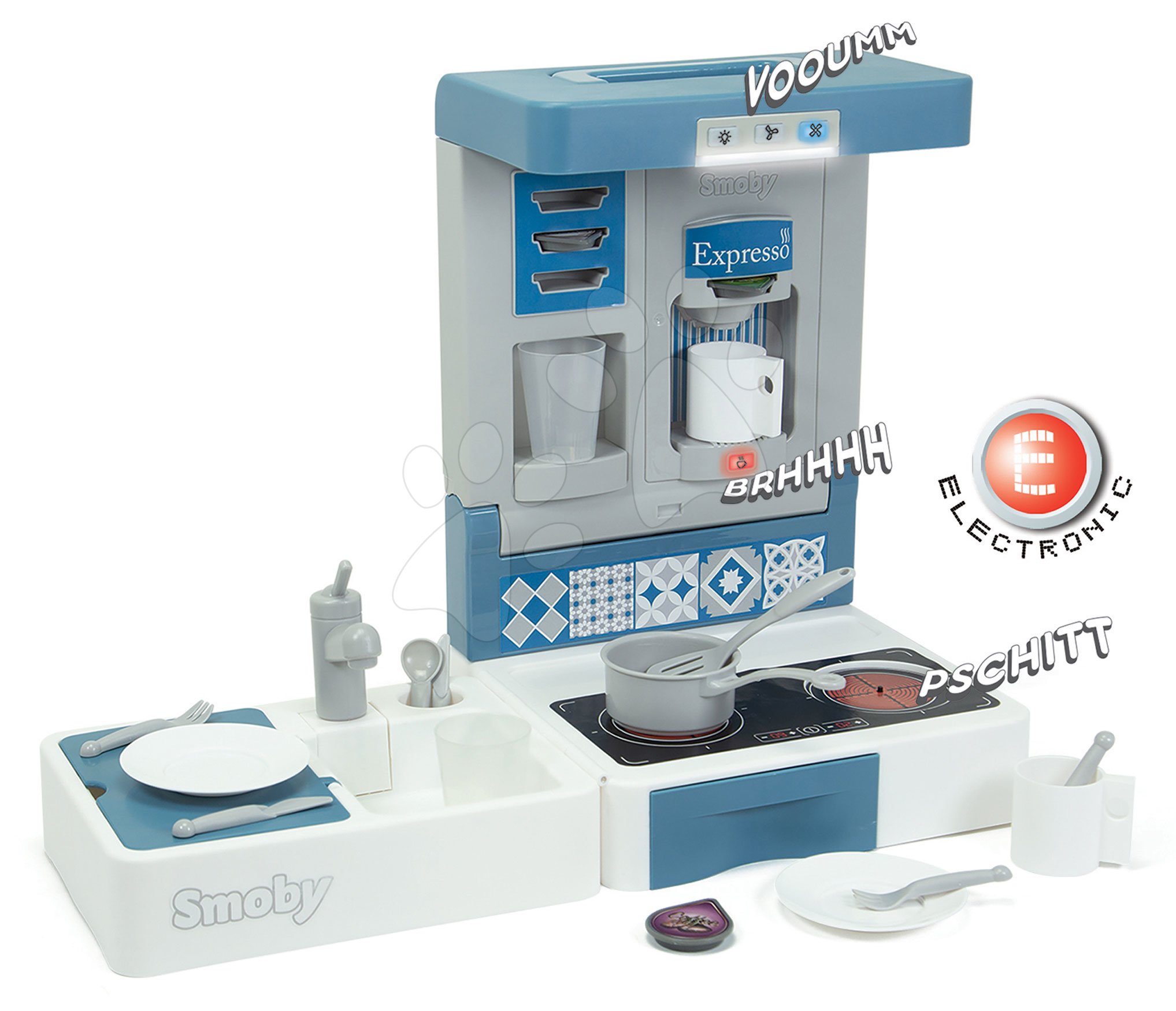 originální dětské kuchyňky od Smoby za výhodné ceny. skládací kuchyňka Cook&Go Blue se zvukem a světlem a množstvím doplňků potěší děti od 3 let.