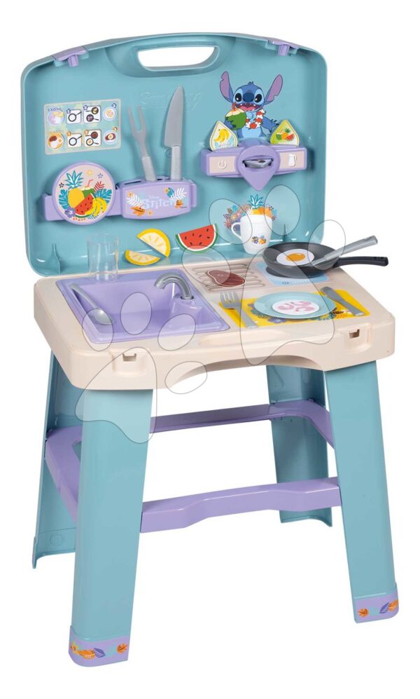 Kuchyňka v kufříku Stitch Kitchen Smoby přenosná s 20 doplňky a kuchyňským nářadím