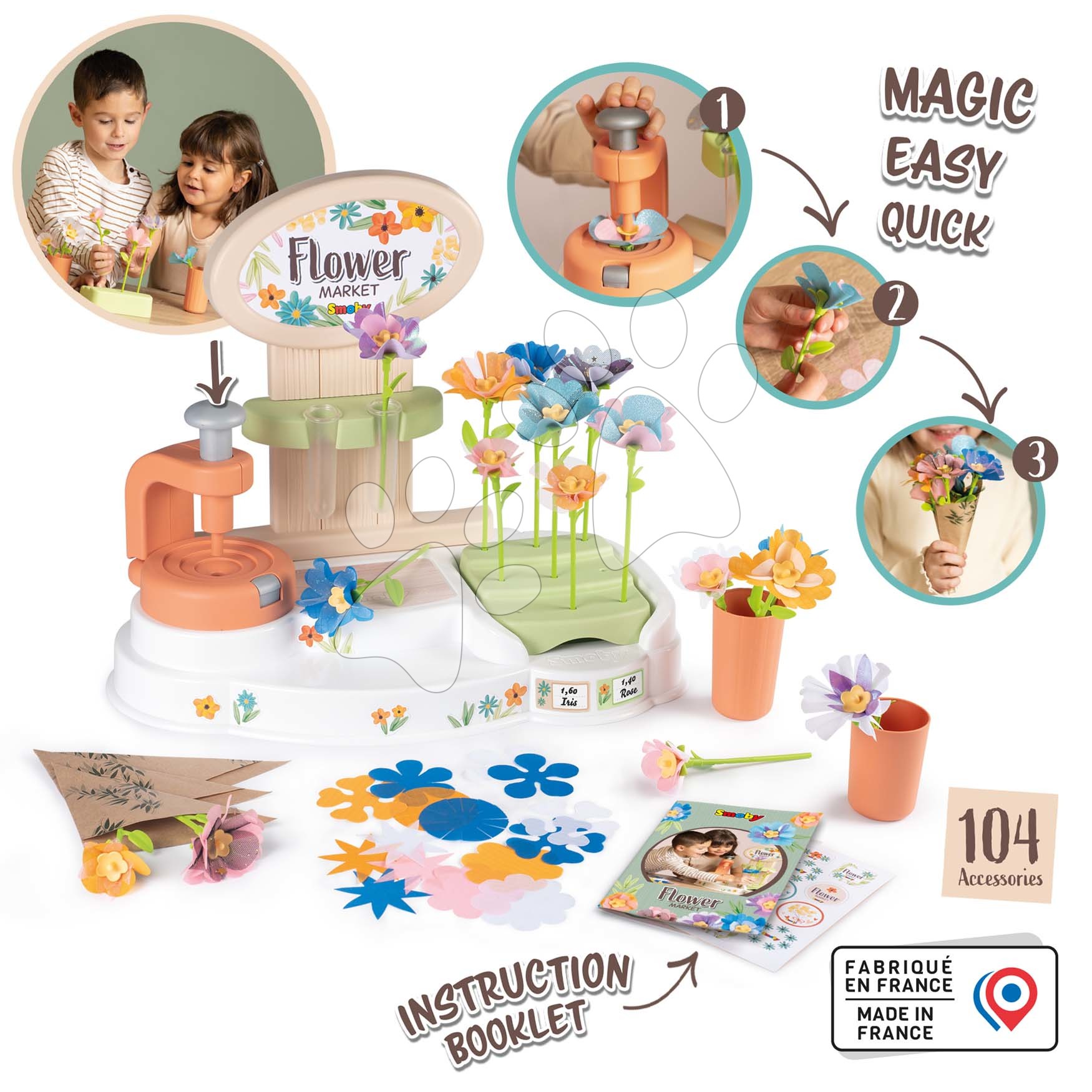 Květinářství s vlastní výrobou květin Flower Market Smoby z různých textilních lupínků 104 doplňků