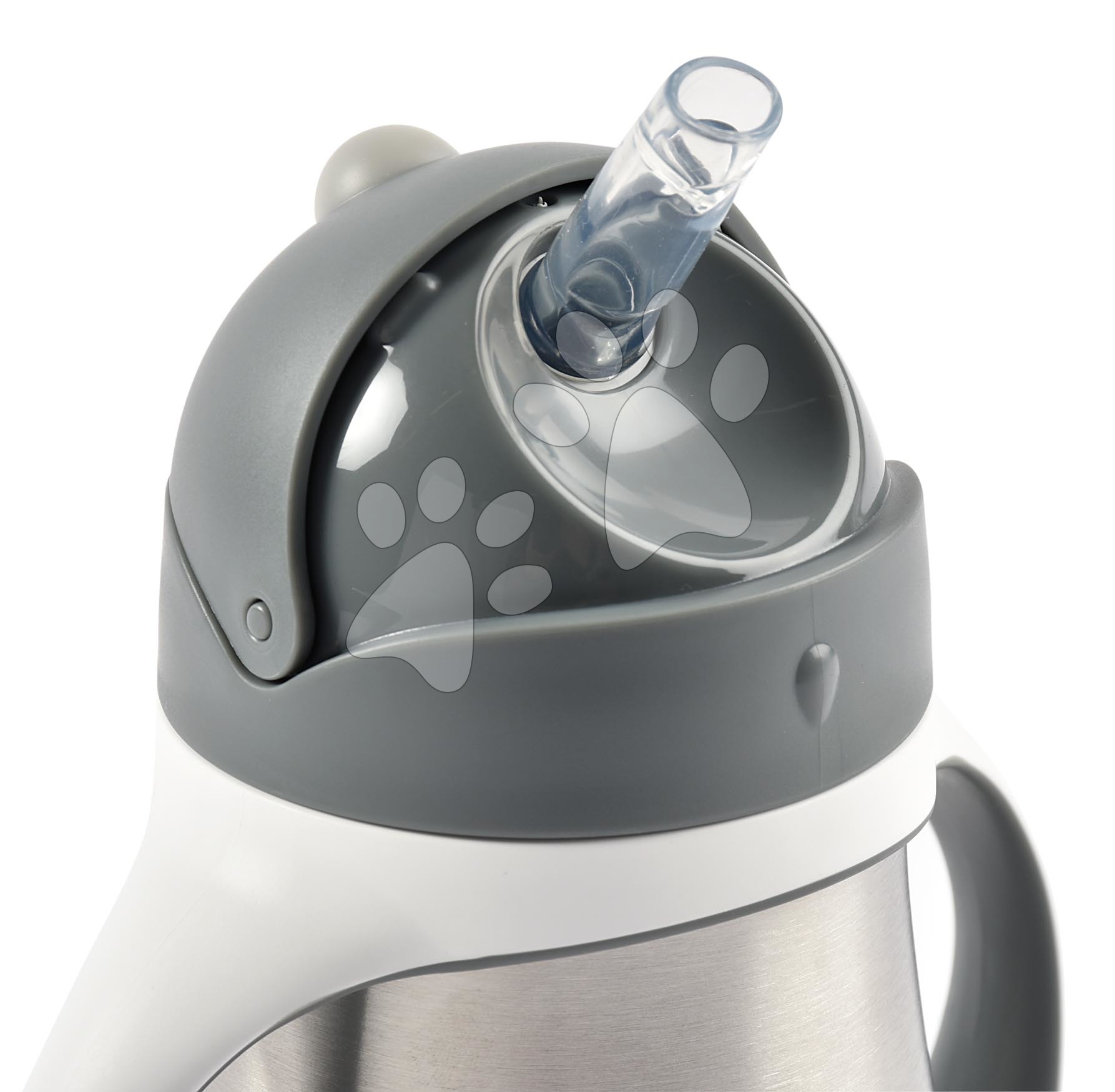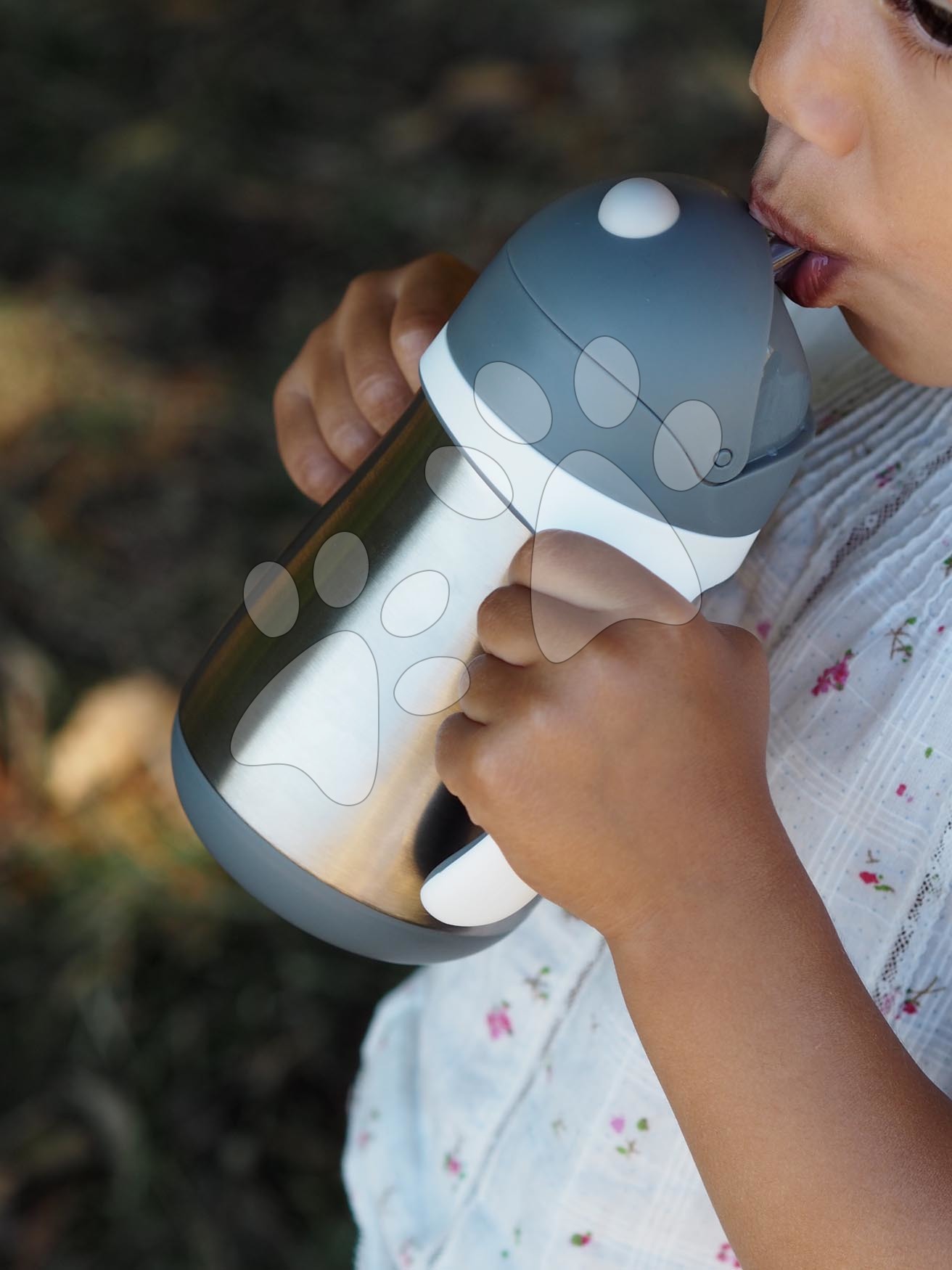 Láhev Bidon s dvojitými stěnami Stainless Steel Straw Cup Beaba Mineral Grey 250 ml z nerezavějící oceli šedá od 8 měsíců