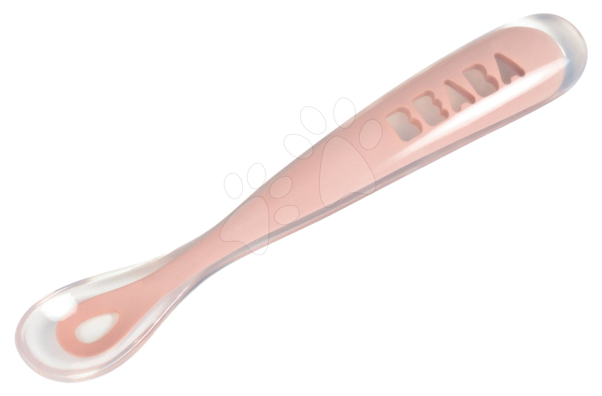 Lžička pro děti Beaba Ergonomic 1st age Old Pink ze silikonu růžová 17 cm od 4 měsíců