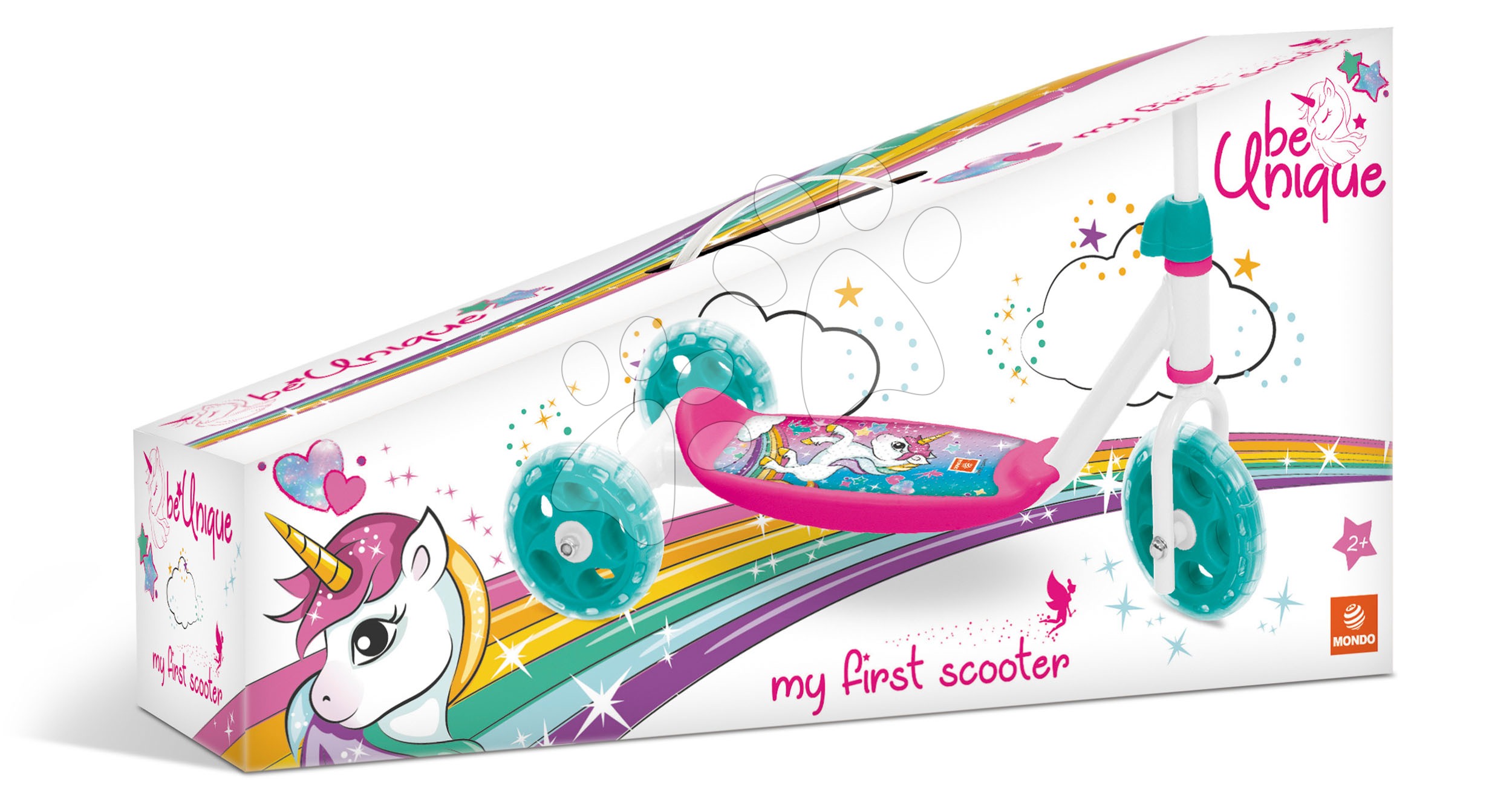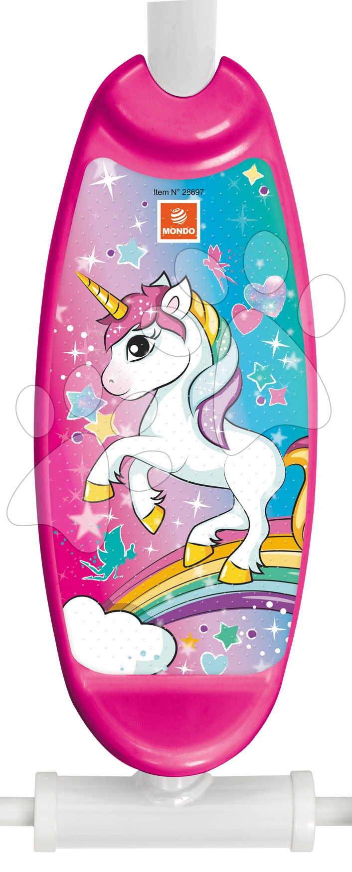Hledáte kvalitní pohádkové koloběžky? Tříkolová koloběžka Jednorožec Mondo s emblémom potěší dívky od 3 let originálním pohádkovým motivem.