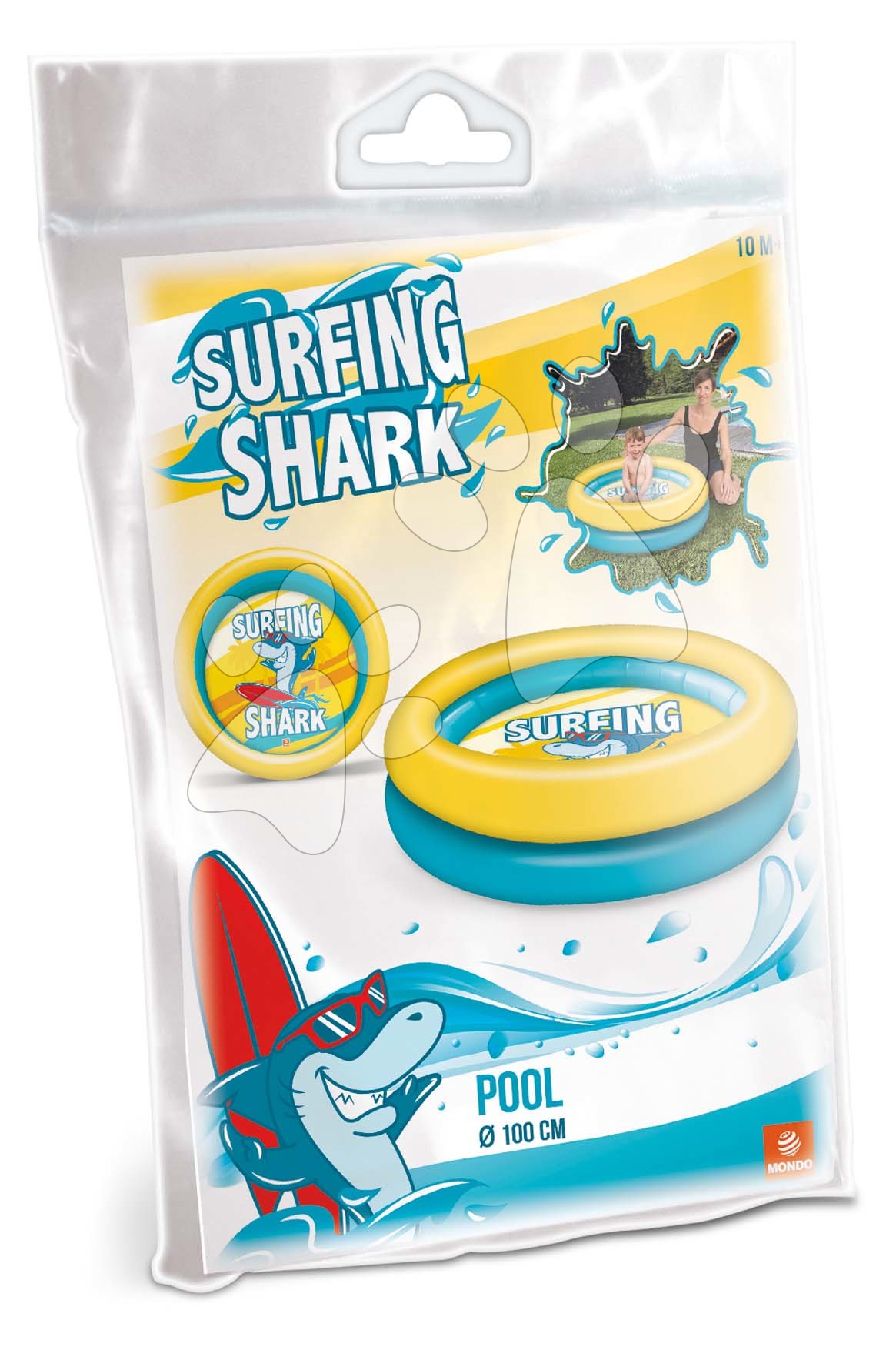 nafukovací bazény pro děti s krásnými motivy přináší italský výrobce Mondo. Nafukovací bazén s motivem Surfing Shark je vhodný pro chlapce a dívky od 10 měsíců.