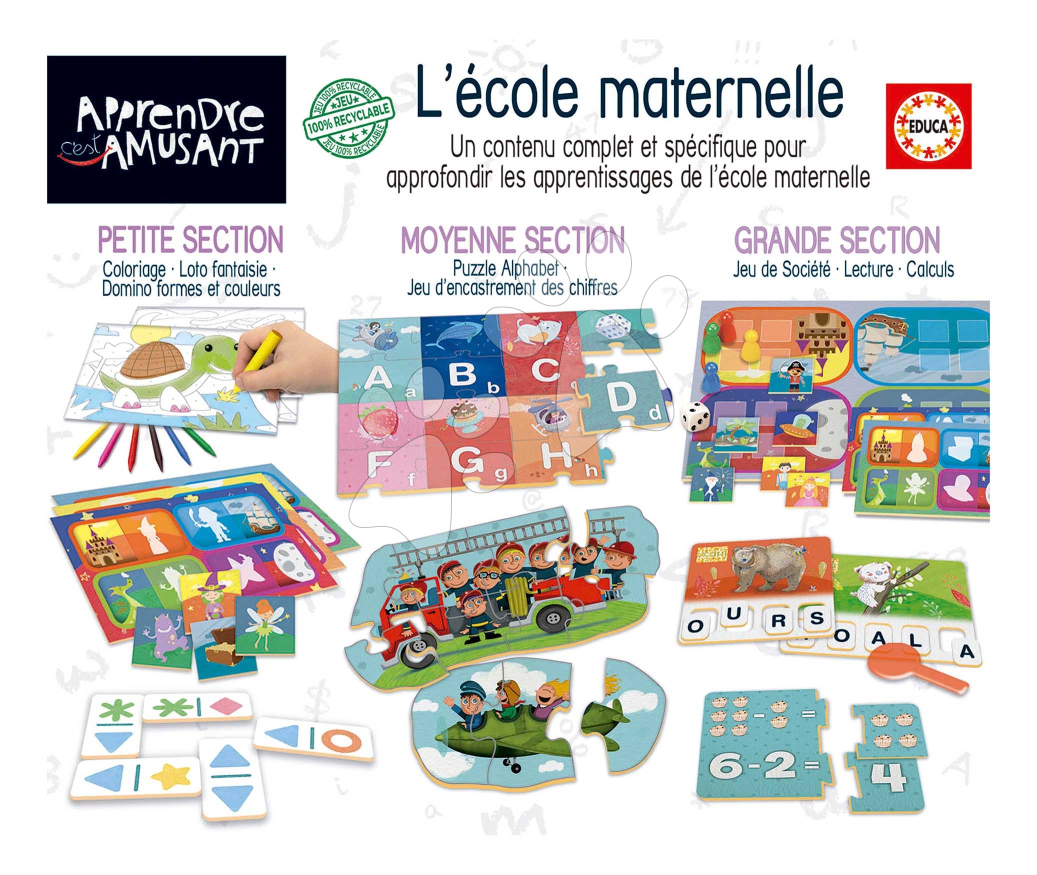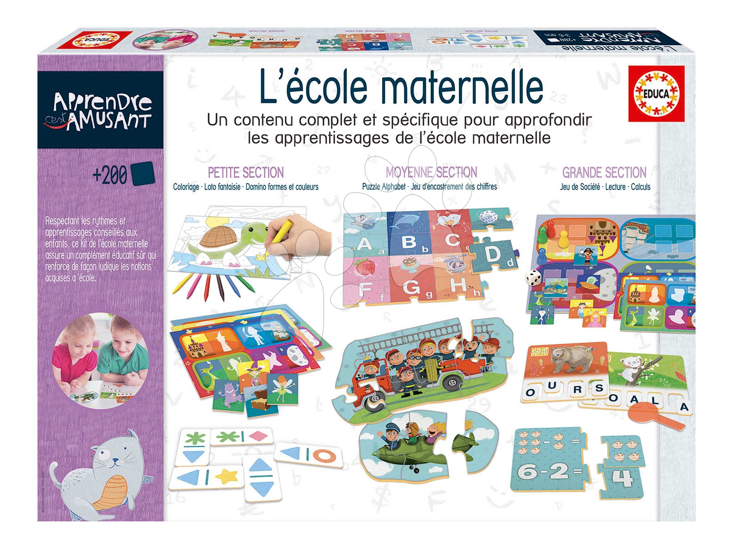 originální hry pro děti od španělského výrobce Educa. Naučná hra Kit École Maternelle je lokalizována ve francouzském jazyce a pomůže dětem od 3 let všestranně se rozvíjet.