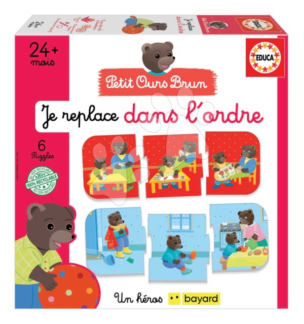Naučná hra pro nejmenší Je replace dans l´ordre Educa Učíme se logicky vytvářet příběhy s medvídky 6 puzzle dílků od 24 měsíců