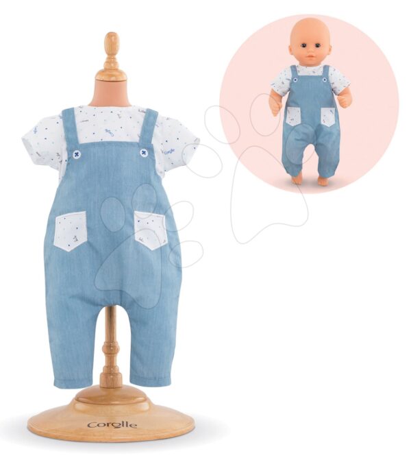 Overal sluší i panence! Džínový overal a tričko pro panenku Corolle perfektně doplní hru vašeho děťátka s panenkou Corolle.