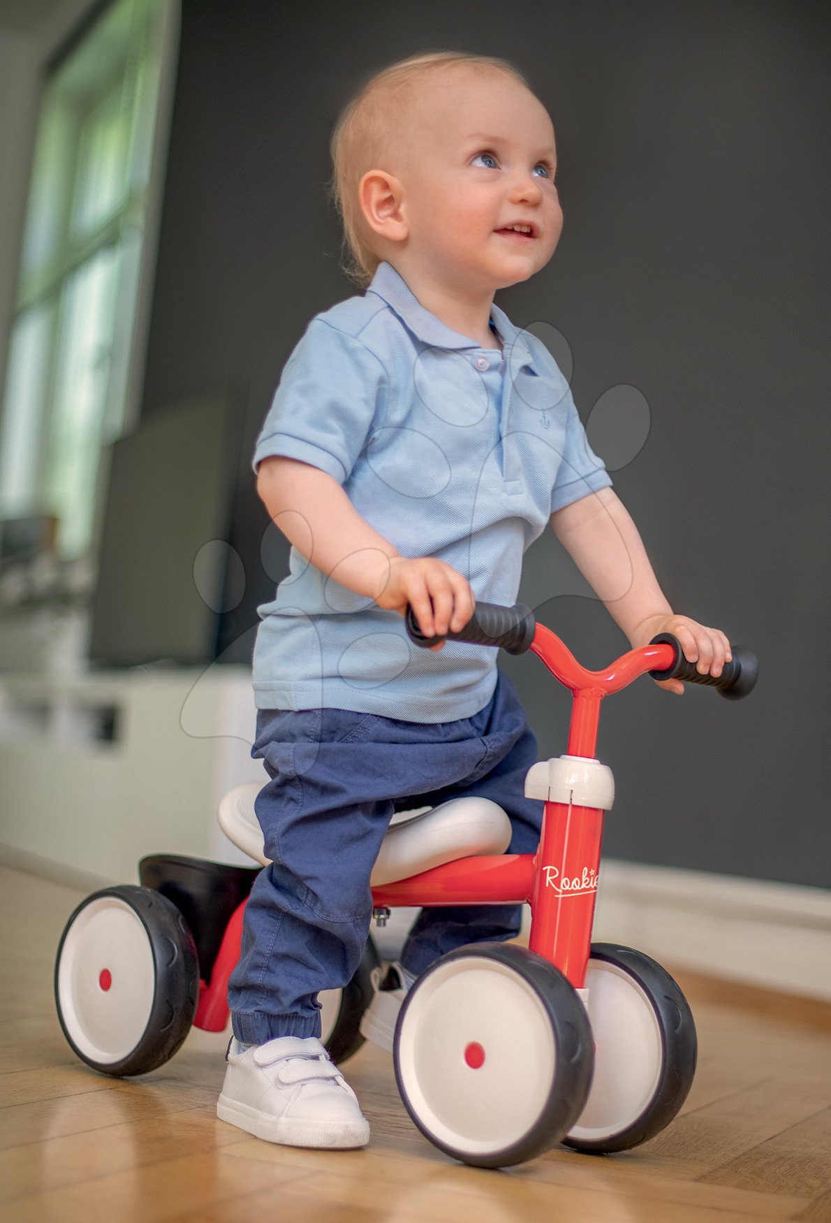 Moderní odrážedla s pevnou konstrukcí od Smoby. Dětské odrážedlo Rookie Red má stabilní 4kolový systém z EVA koleček pro děti od 12 měsíců.
