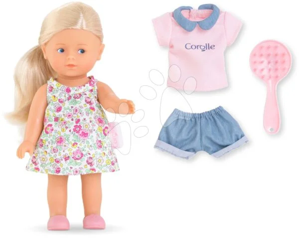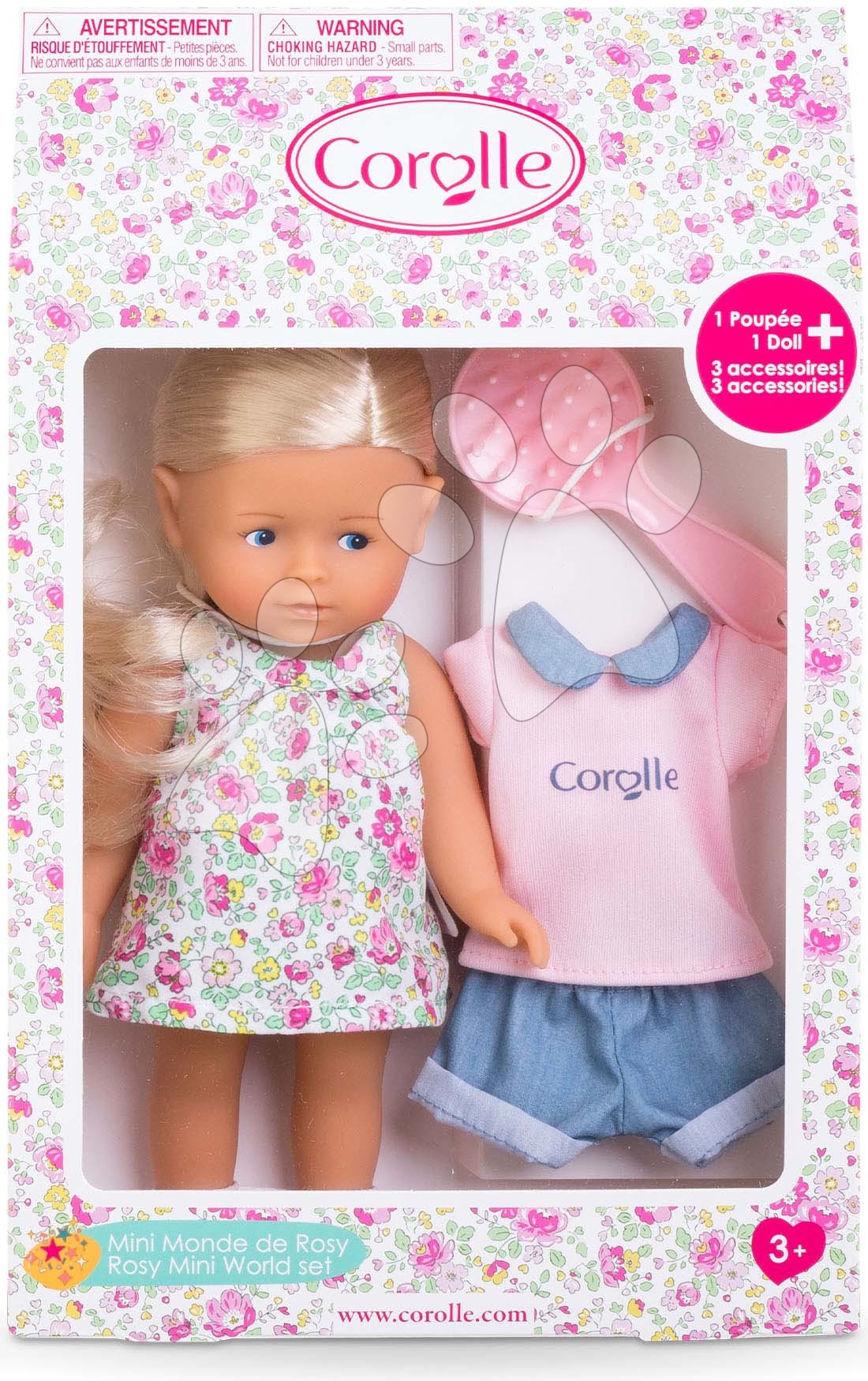 Panenka Rosy Mini World Set Mini Corolline Corolle blond vlasy a modré oči s oblečením 3 doplňky 20 cm