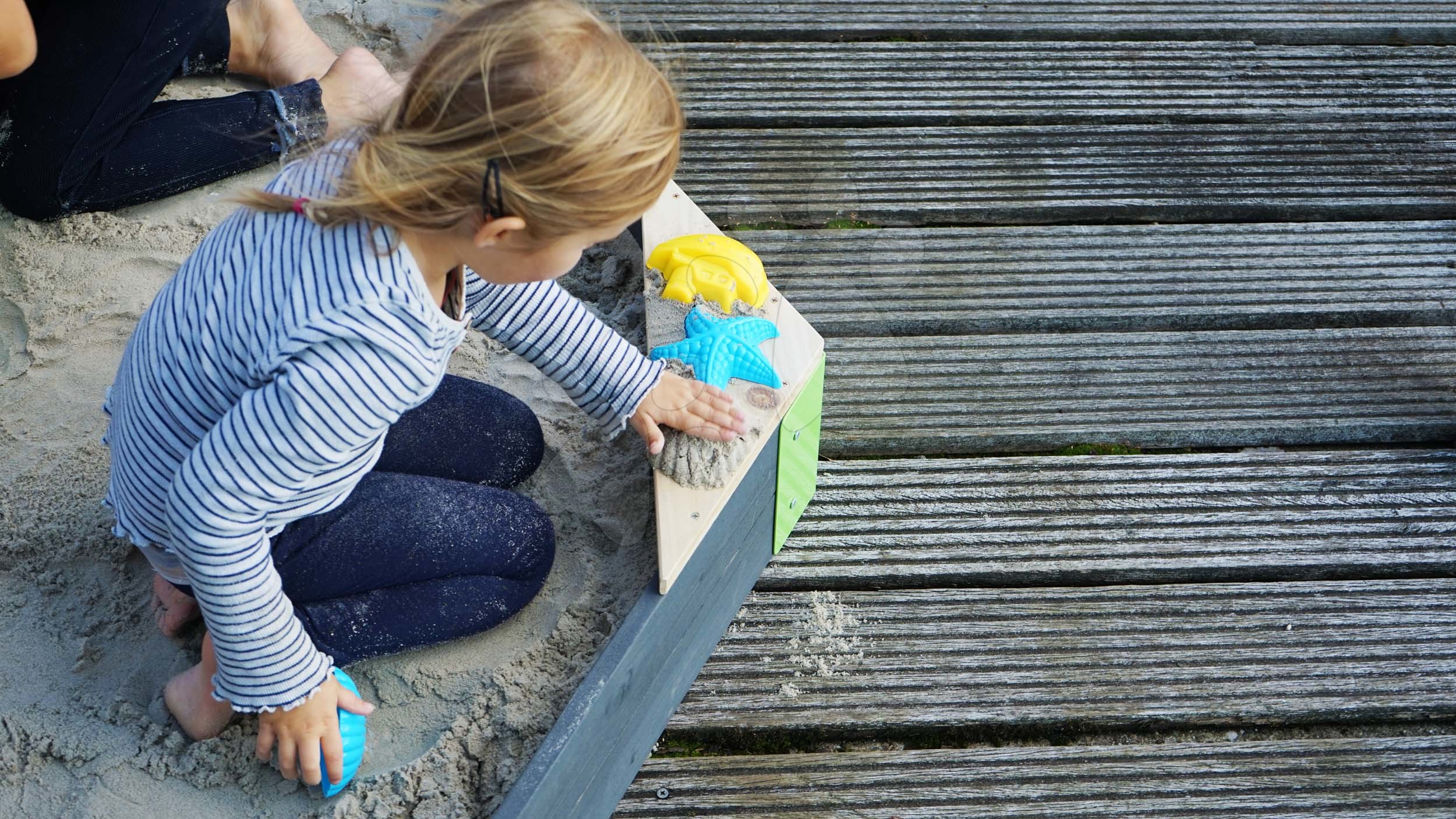 dřevěná pískoviště Exit Toys ve špičkové kvalitě. Cedrové pískoviště Hexagon se 3 sedadly má rozměry 160*140 cm a objem až 375 kg.