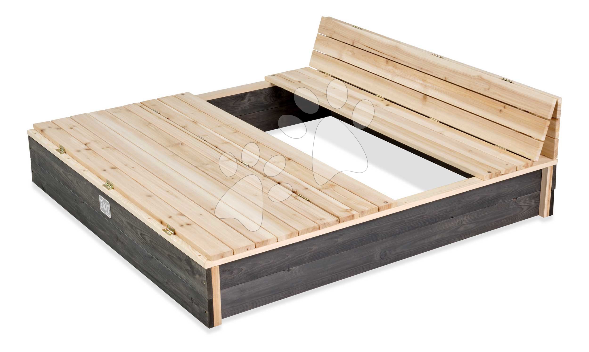 Pískoviště s lavicemi Aksent Wooden Sandpit Exit Toys cypřišové s krytem objem 440 kg 136*132 cm od 3 let