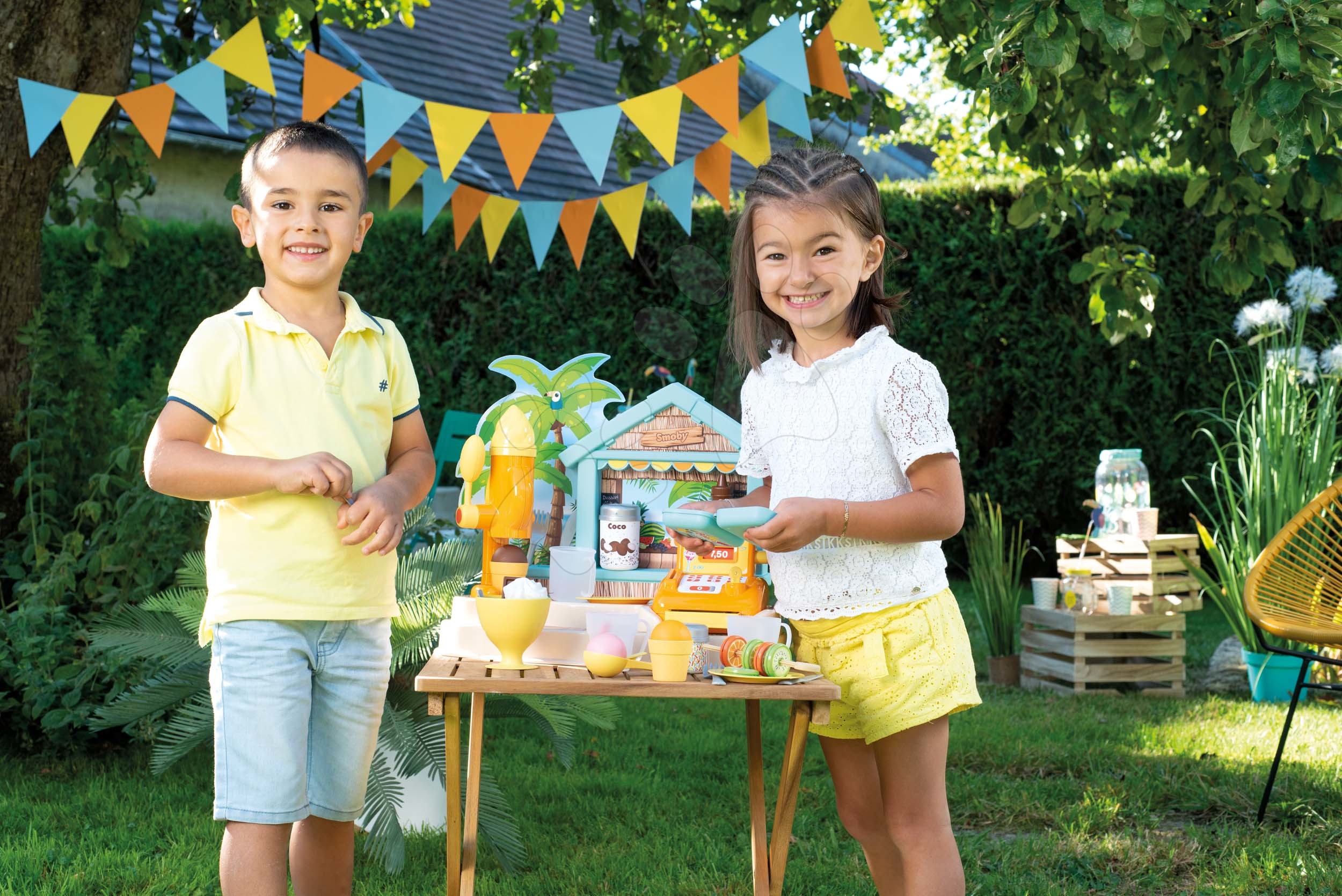 originální hračky na léto pro děti od 3 let. Plážový bar se zmrzlinou a sadou 38 doplňků od francouzského Smoby zabaví děti na dlouhé hodiny.