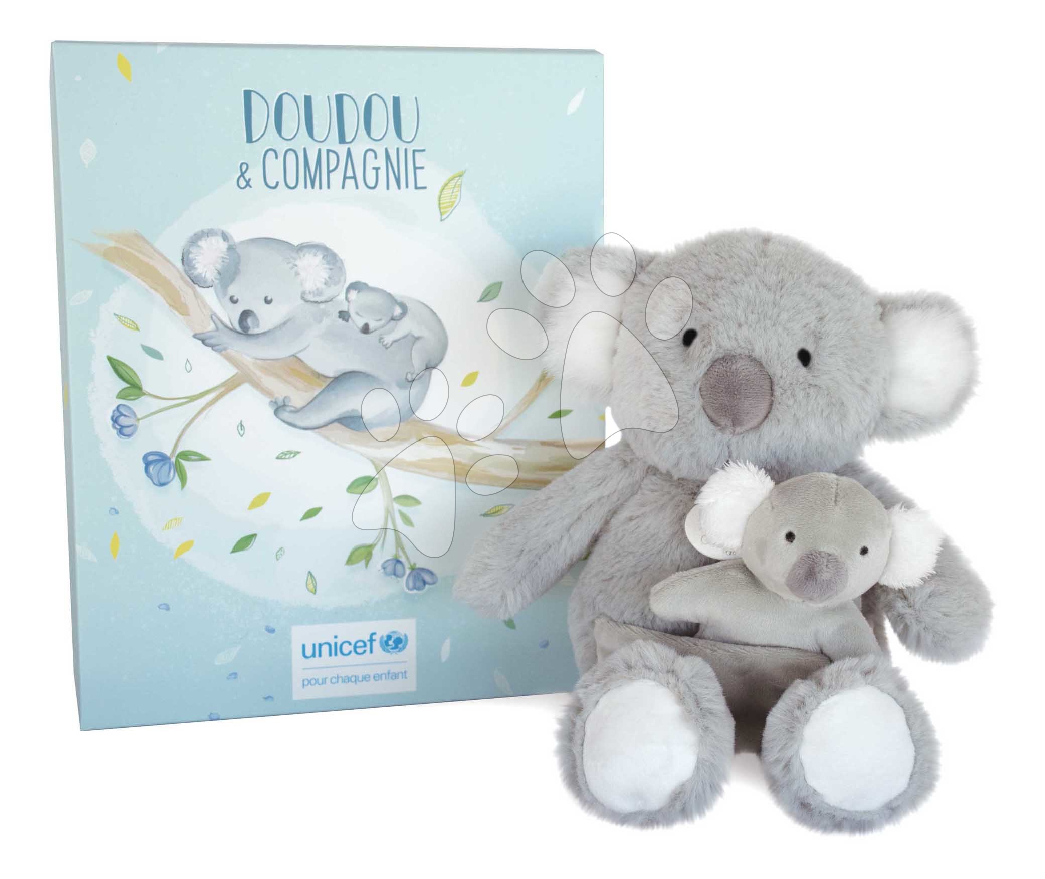 Plyšová koala s mláďátkem Koala Unicef Collection Doudou et Compagnie v dárkovém balení šedá 25 cm od 0 měsíců