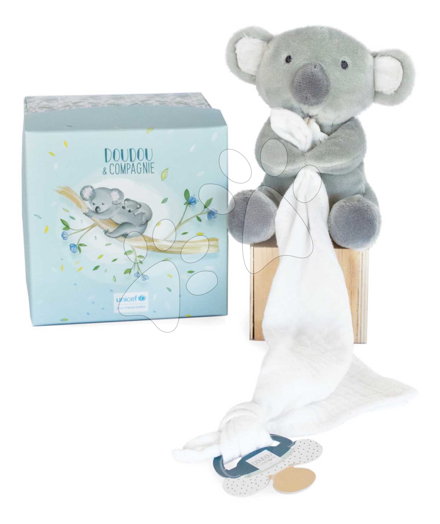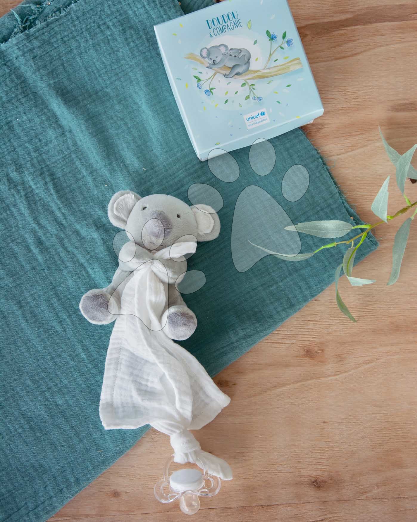 Plyšová koala se šňůrkou na dudlík Koala Dummy Holder Unicef ​​Collection Doudou et Compagnie v dárkovém balení šedá 12 cm od 0 měsíců