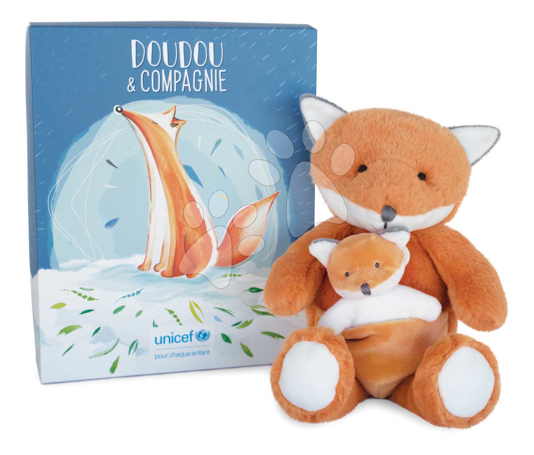 Plyšová liška s mláďátkem Fox Unicef Collection Doudou et Compagnie v dárkovém balení oranžová 25 cm od 0 měsíců