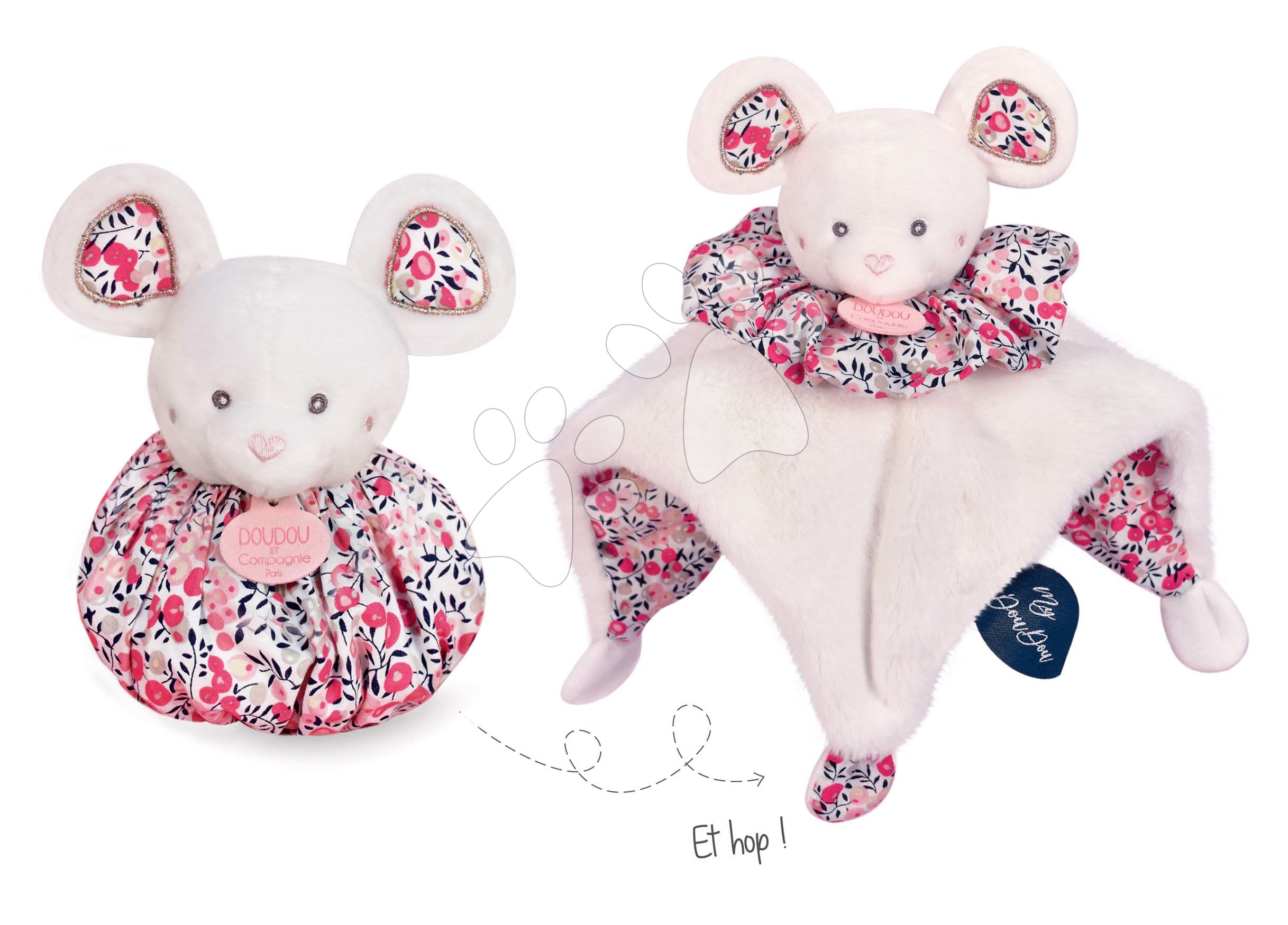 Plyšová myška na mazlení Doudou Boule 3v1 Doudou et Compagnie růžová 25 cm od 0 měsíců