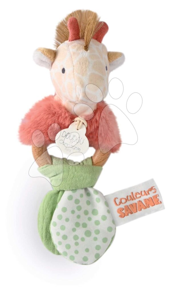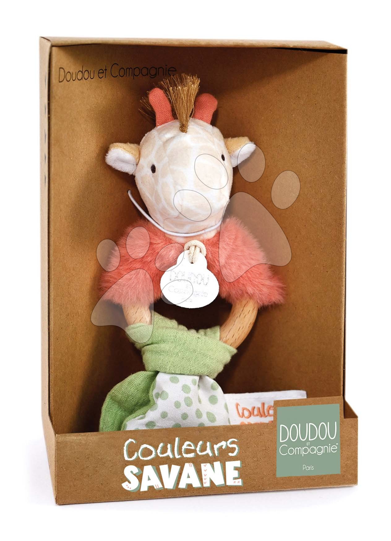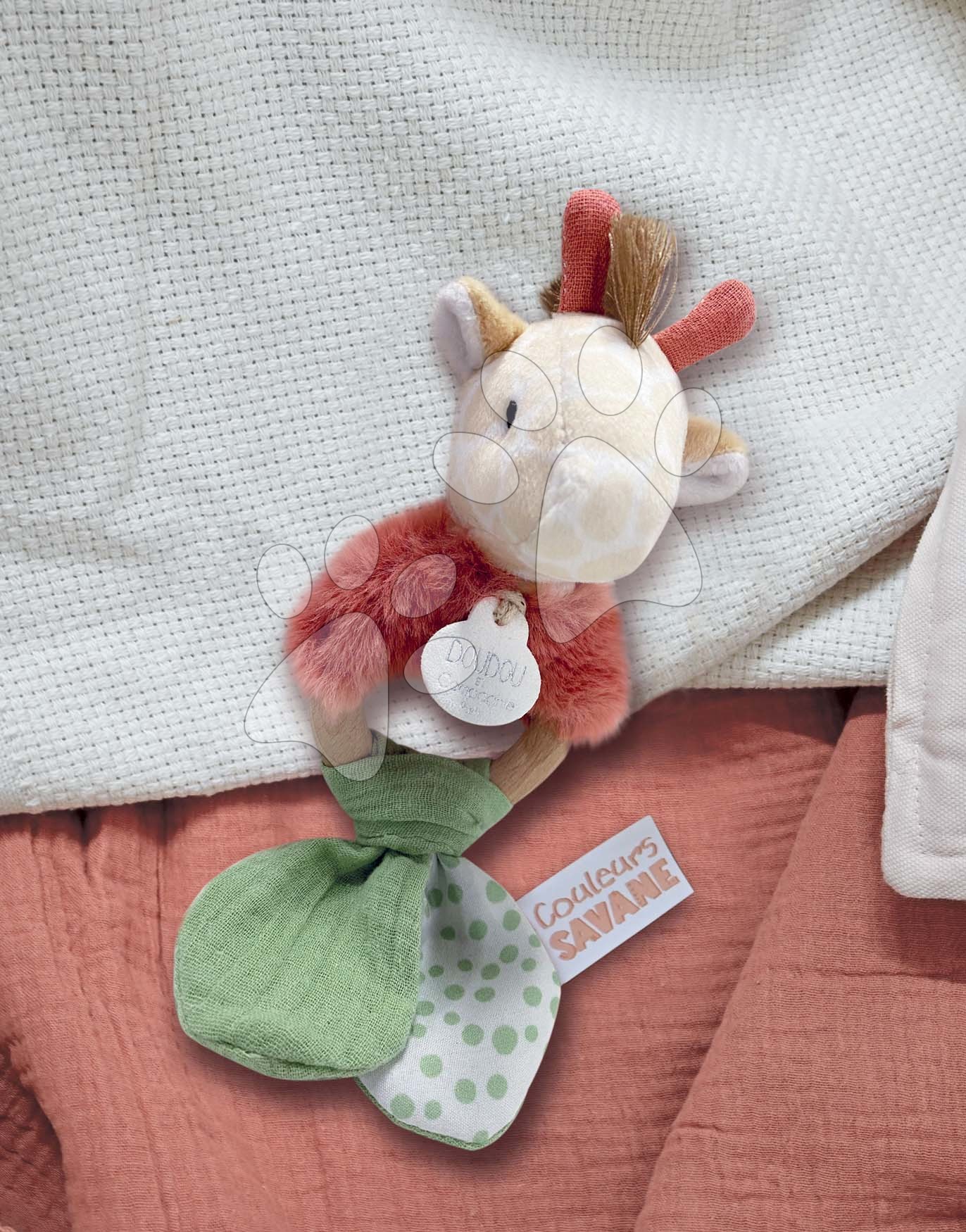 Plyšová žirafa s chrastítkem Couleurs Savane Doudou et Compagnie červená 15 cm od 0 měsíců