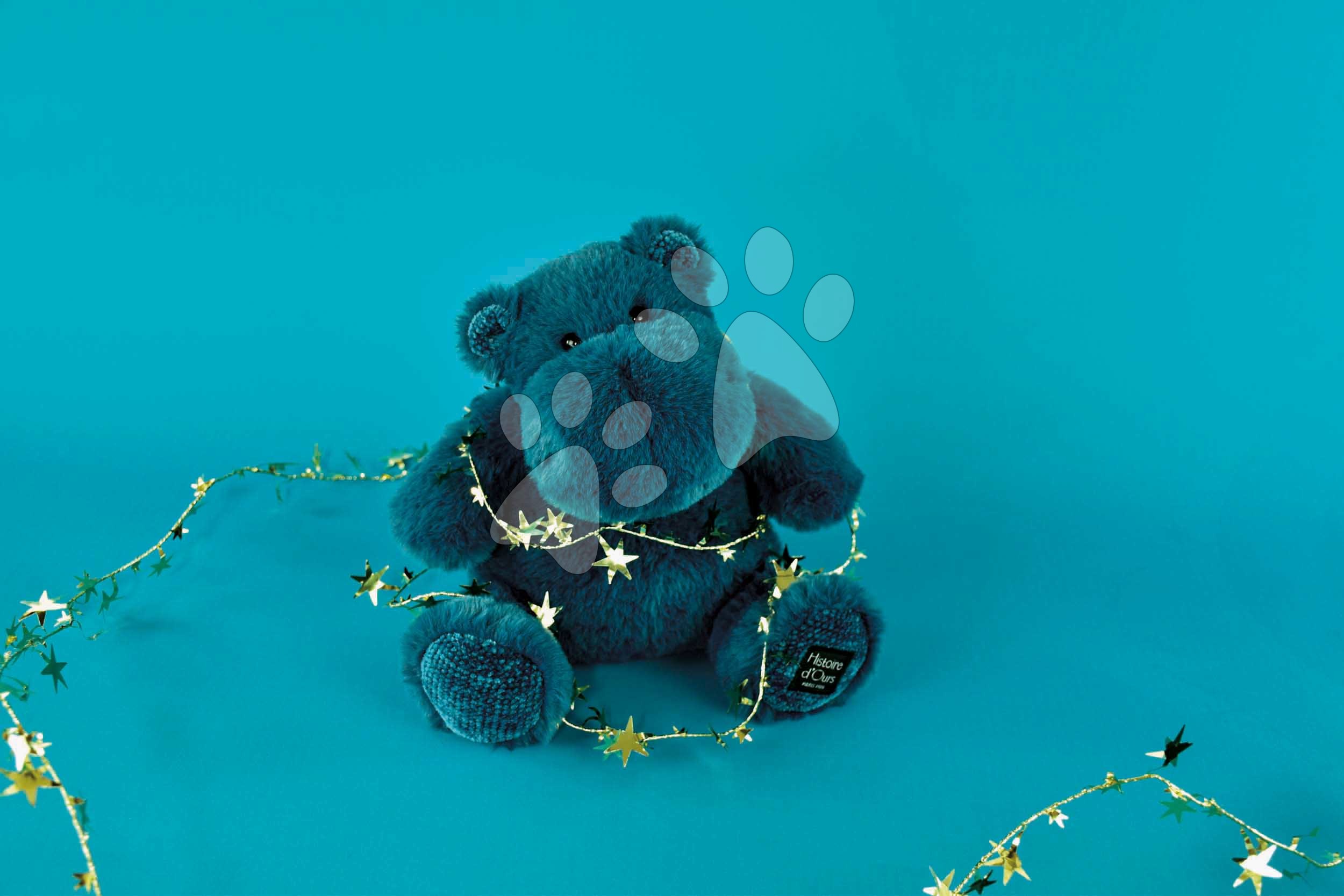 Plyšový hrošík Hip’Pop Histoire d’ Ours modrý 25 cm od 0 měsíců